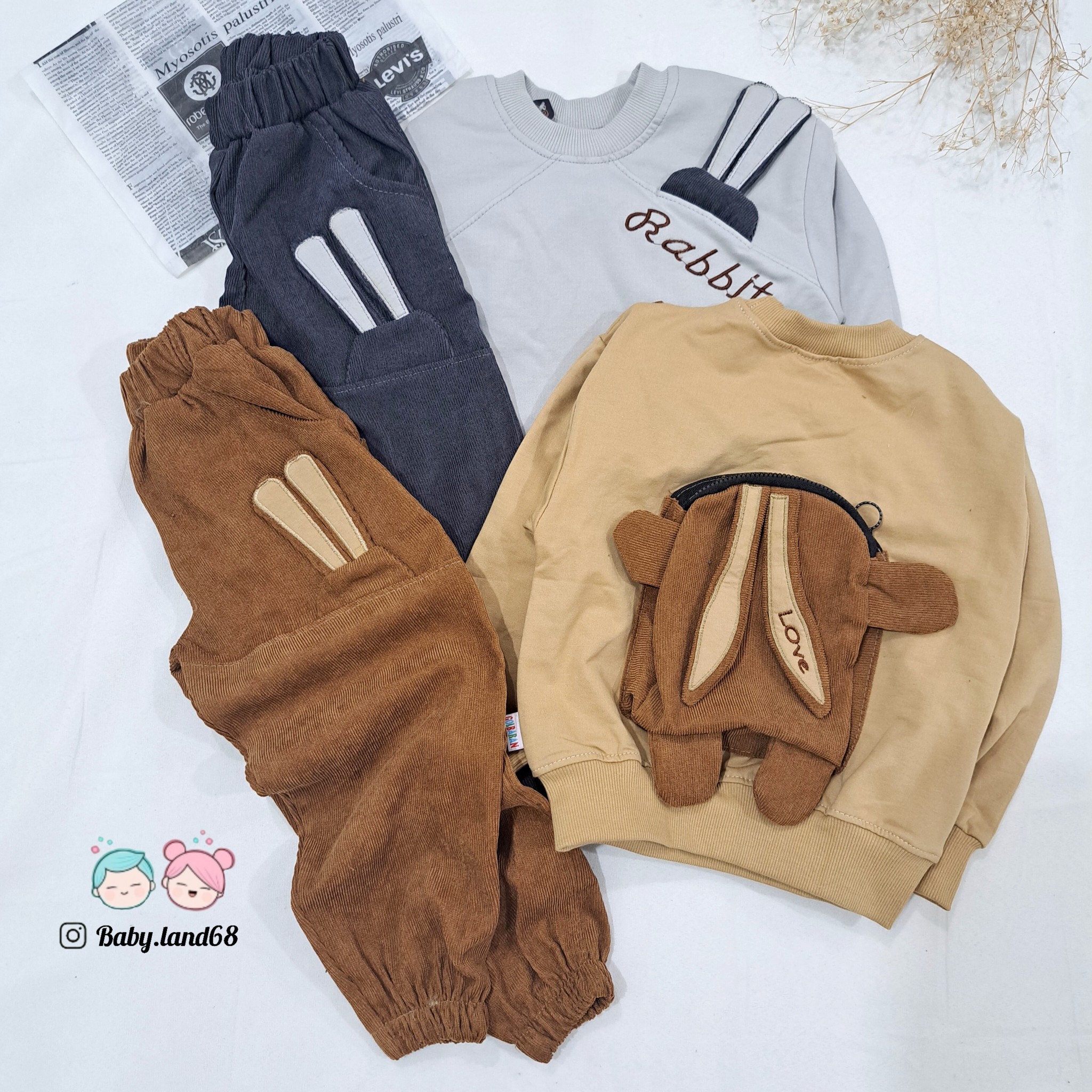 ست بلوز و شلوار کوله دار بیرونی بچگانه اسپرت مناسب پسر و دختر۲ تا ۹ سال سایز بندی ۴۰ تا ۵۵ جنس بلوز دورس پنبه با کیفیت و جنس شلوار مخمل کبریتی