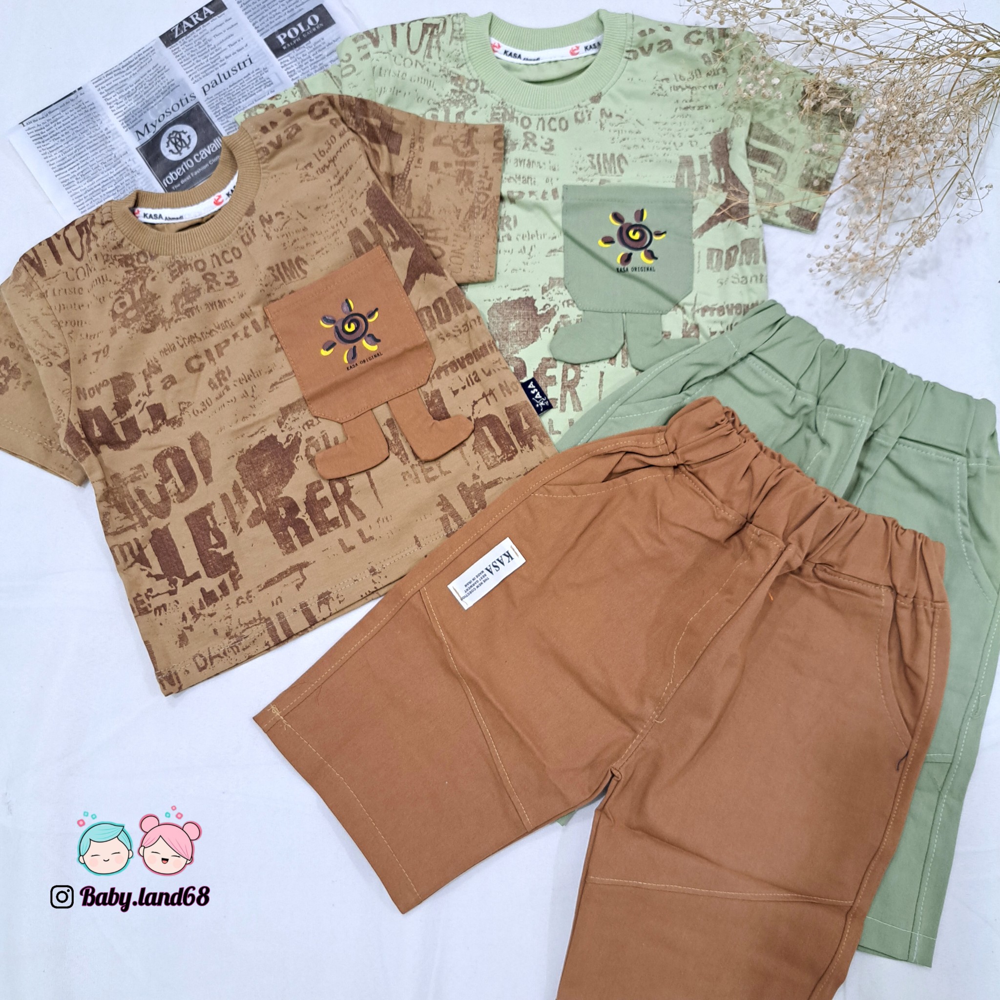 ست بیرونی تیشرت و شلوارک کتان بچگانه اسپرت مناسب پسر و دختر ۱ تا ۵ سال سایز ۳۵ تا ۴۵ جنس تیشرت پنبه و شلوارک کتان درجه یک مدل جیب فانتزی پادار
