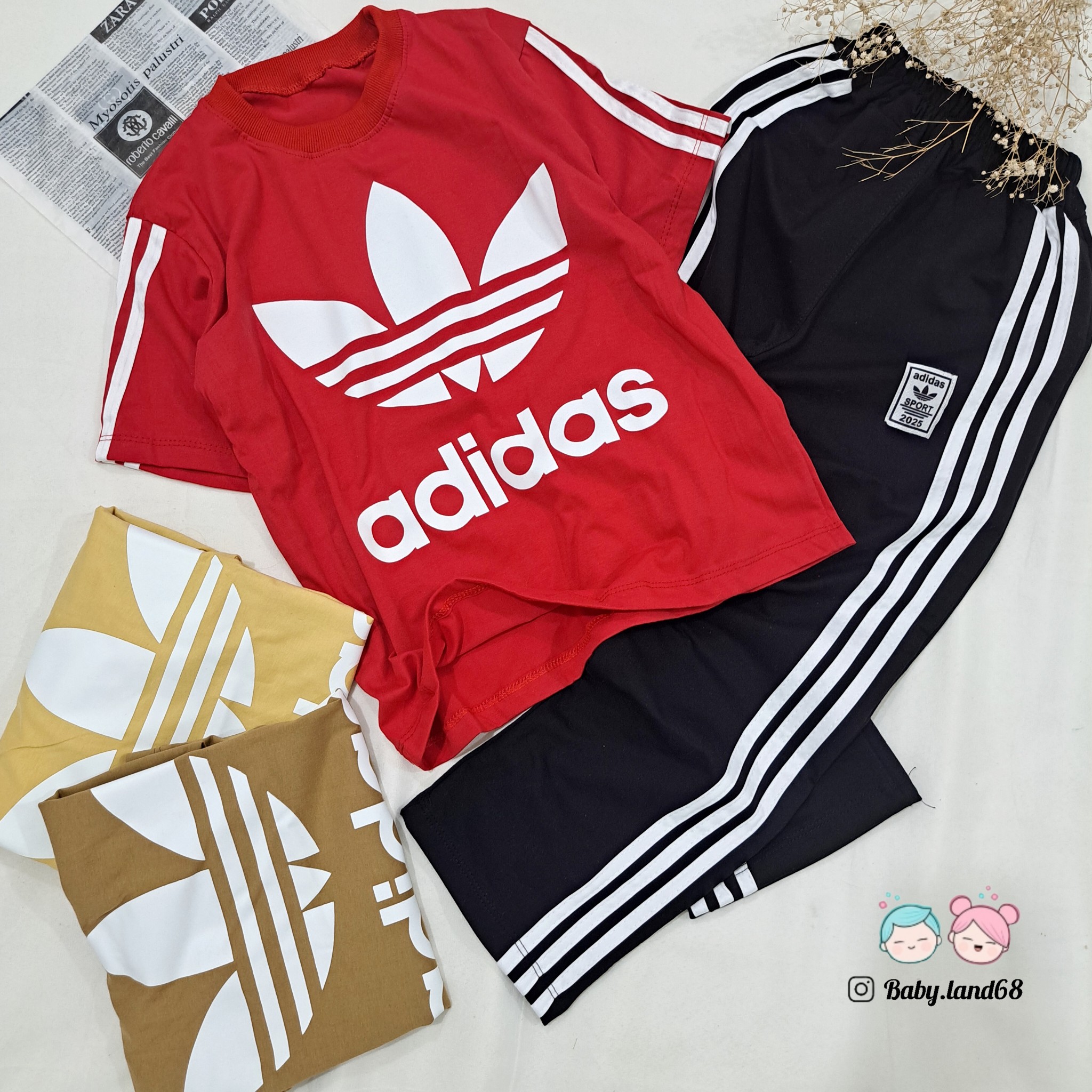ست تیشرت و شلوار بگ نواردوزی آدیداس اسپرت کودک و نوجوان خواهر و برادری سایز ۵۵ و ۶۰ مناسب ۸ تا ۱۰ سال قواره بزرگ جنس پنبه لاکرادار با کیفیت