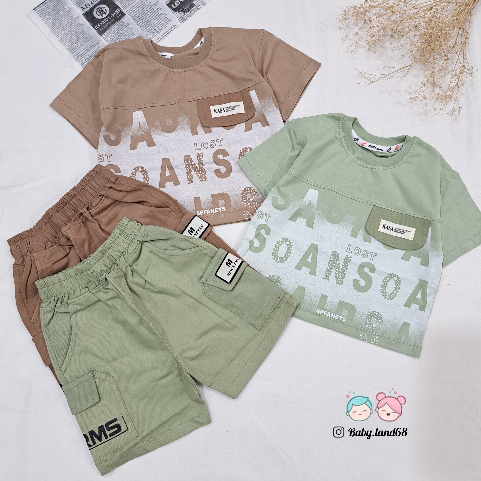 ست تیشرت و شلوارک بیرونی کتان بچگانه اسپرت سایز ۳۵ تا ۵۰ مناسب ۱ تا ۷ سال قواره دار لش جنس تیشرت پنبه و شلوارک کتان درجه یک طرح حروف