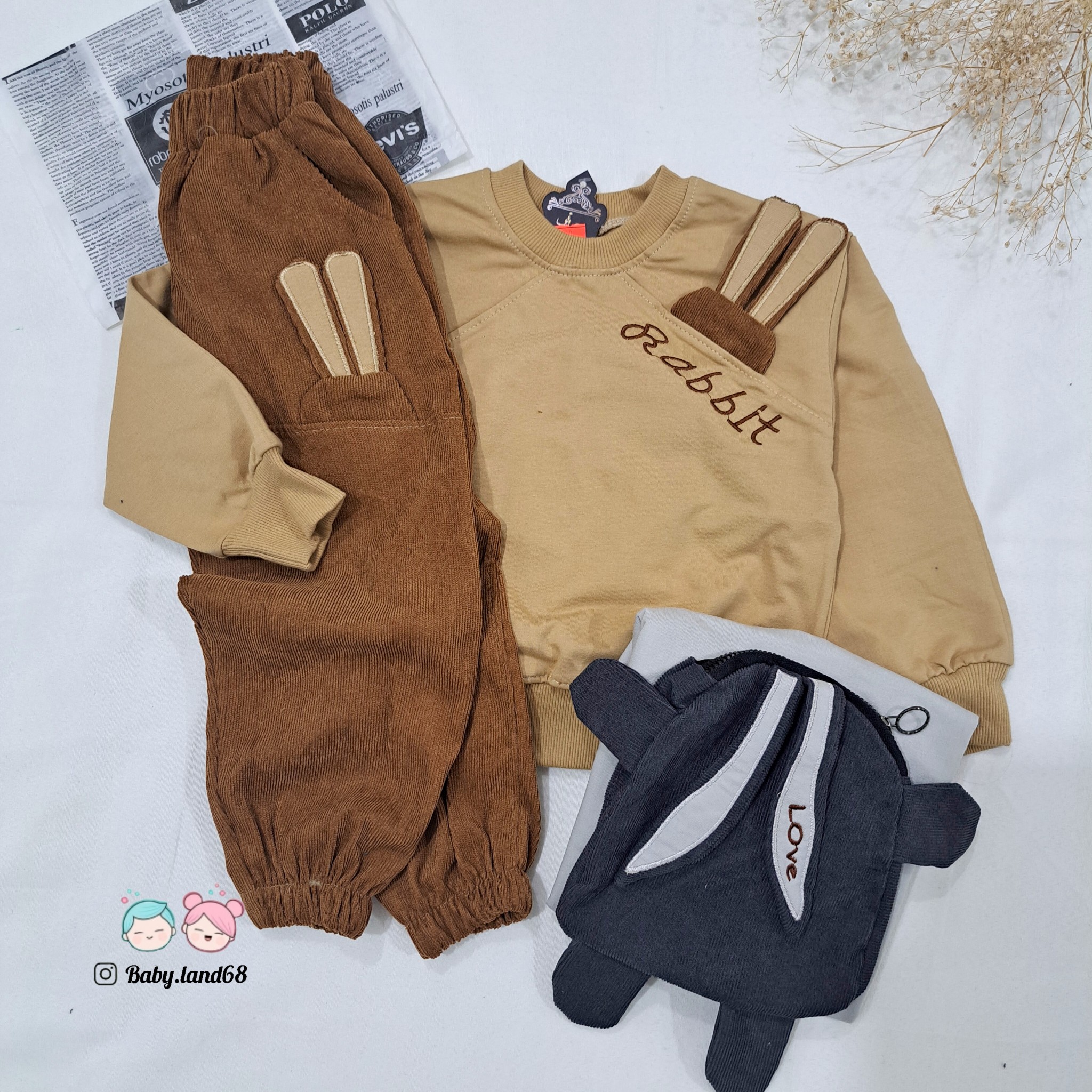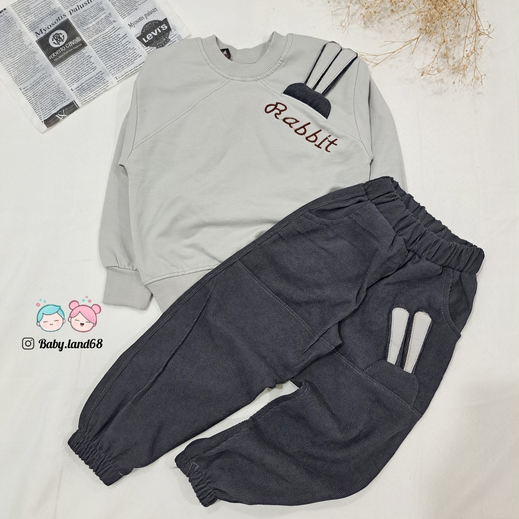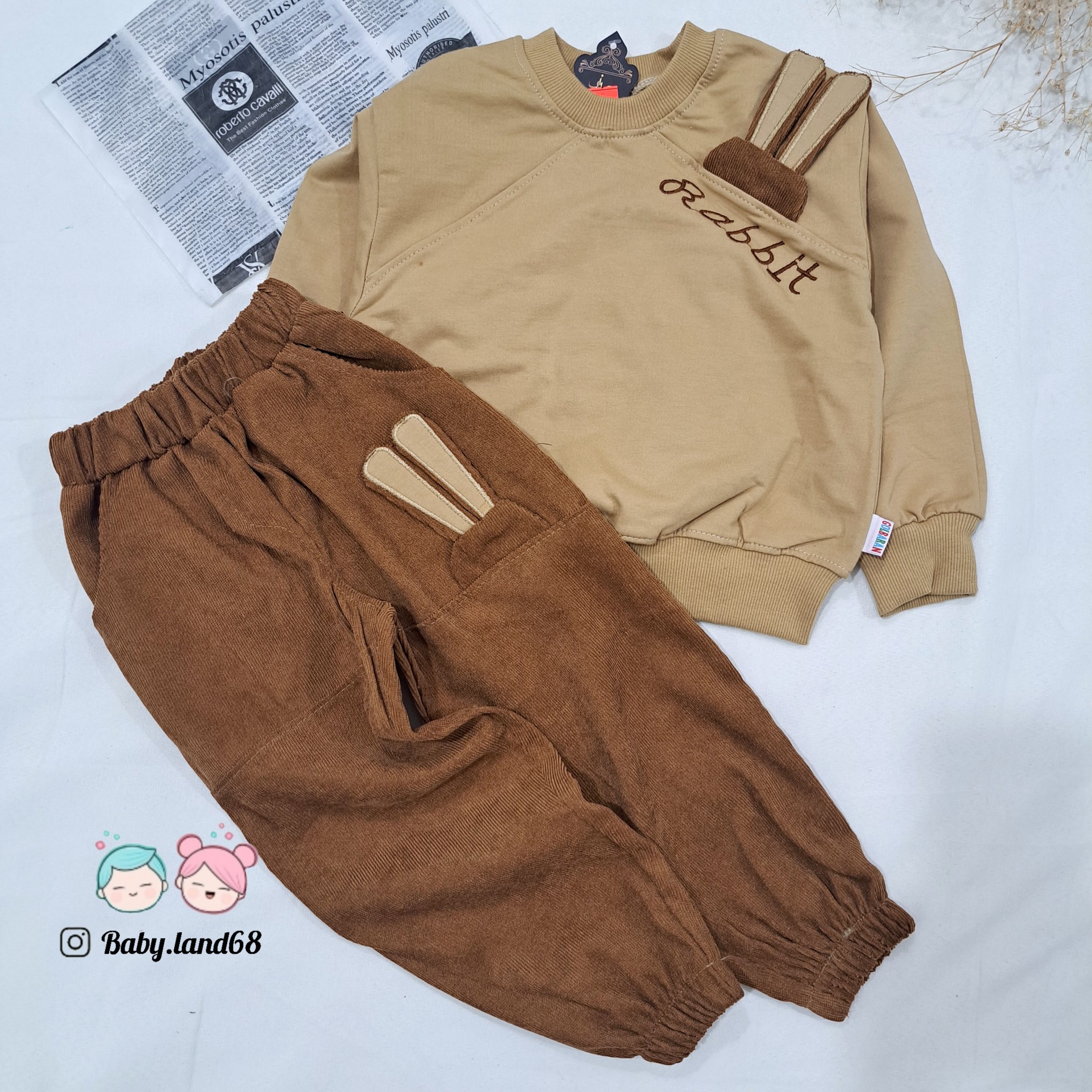 ست بلوز و شلوار کوله دار بیرونی بچگانه اسپرت مناسب پسر و دختر۲ تا ۹ سال سایز بندی ۴۰ تا ۵۵ جنس بلوز دورس پنبه با کیفیت و جنس شلوار مخمل کبریتی