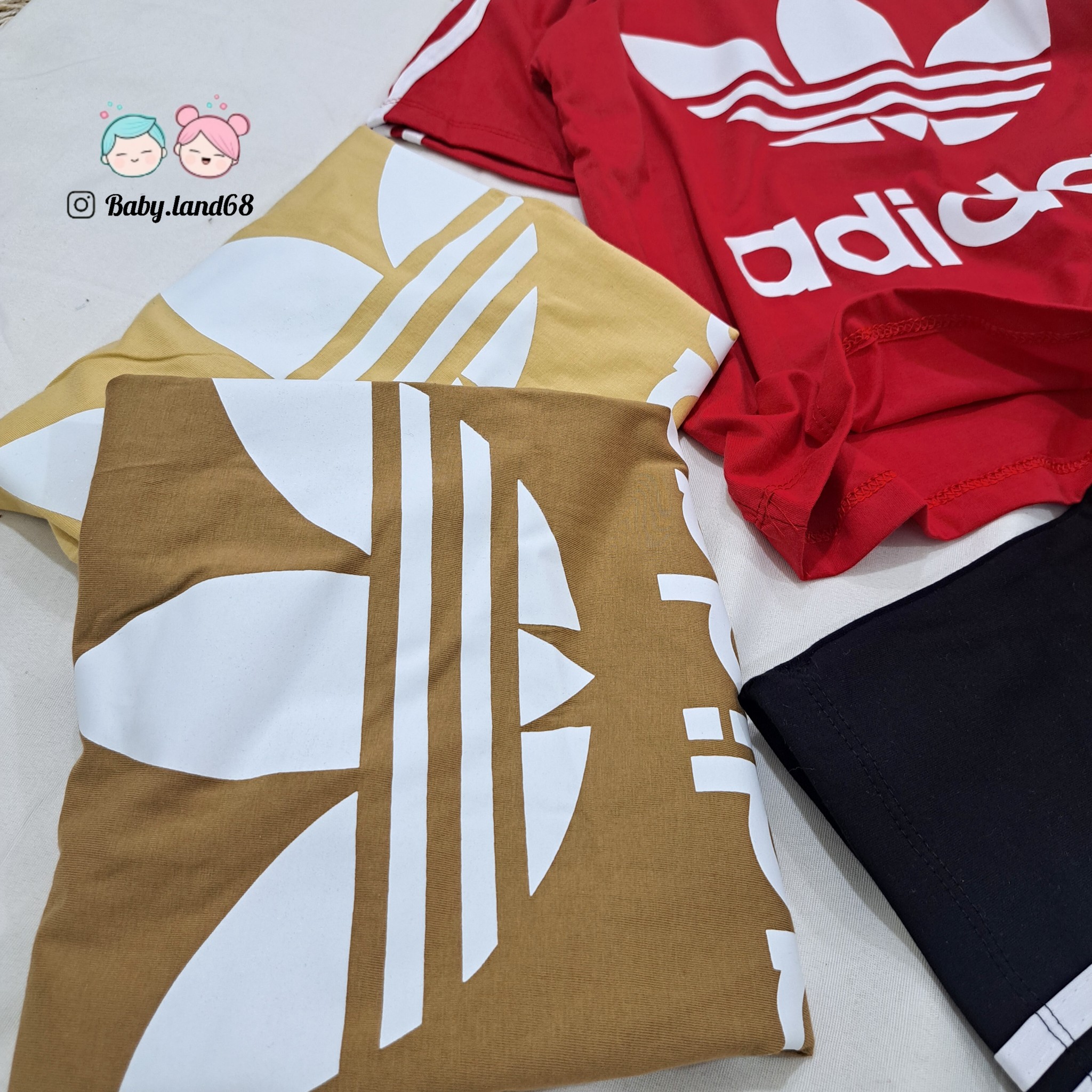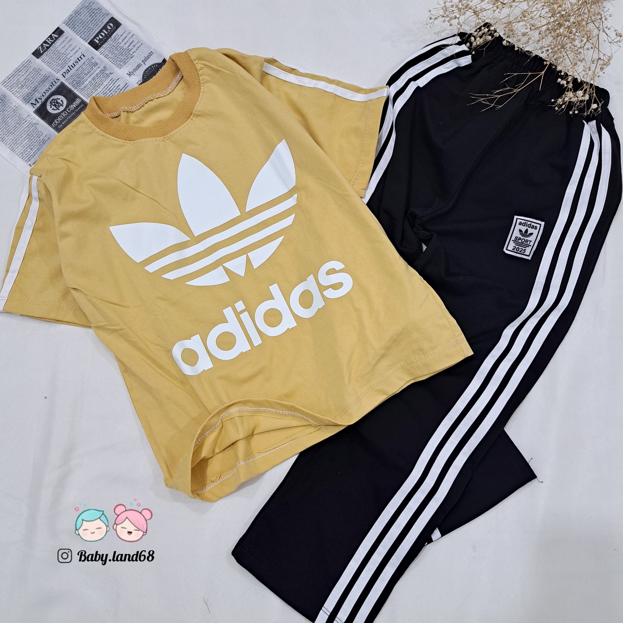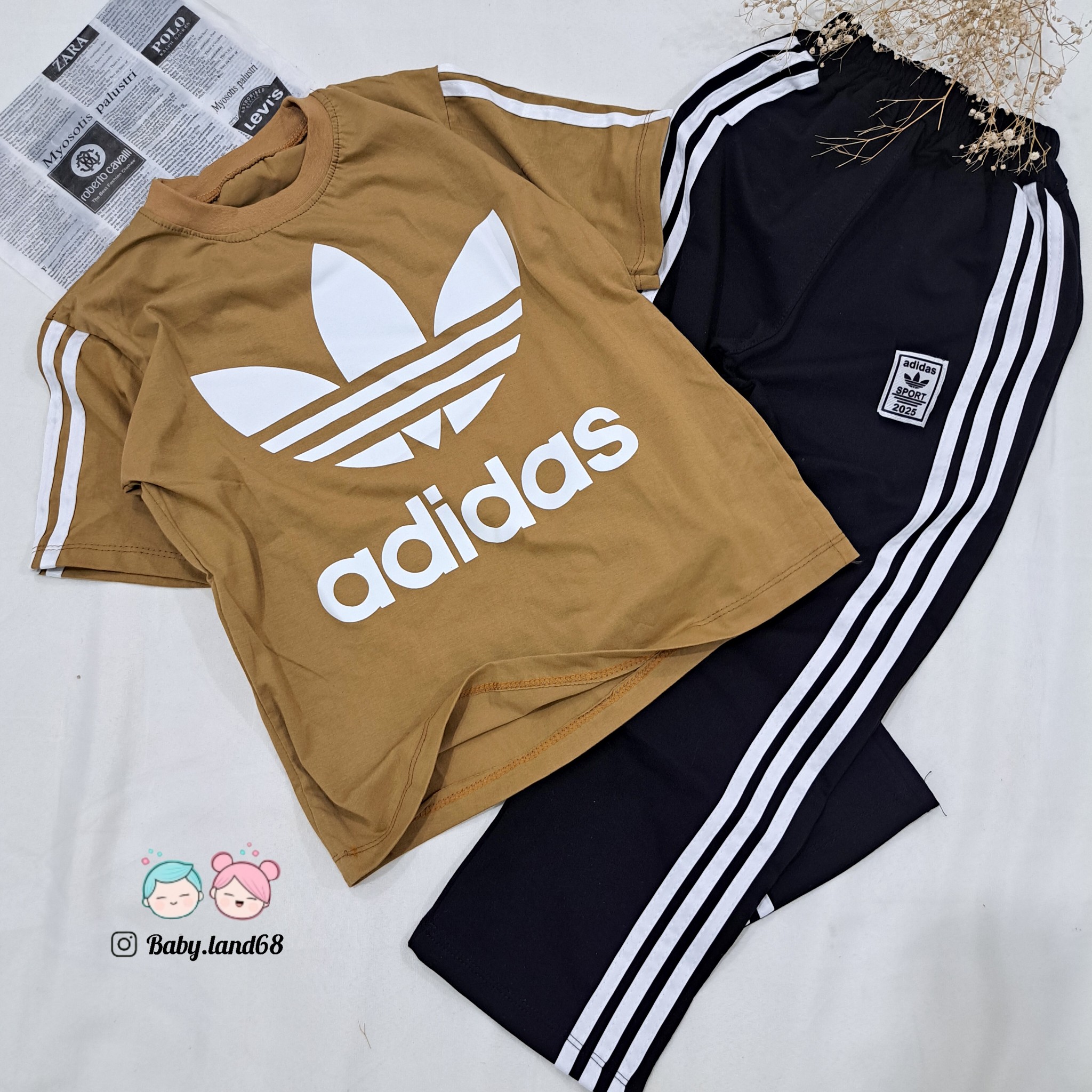 ست تیشرت و شلوار بگ نواردوزی آدیداس اسپرت کودک و نوجوان خواهر و برادری سایز ۵۵ و ۶۰ مناسب ۸ تا ۱۰ سال قواره بزرگ جنس پنبه لاکرادار با کیفیت