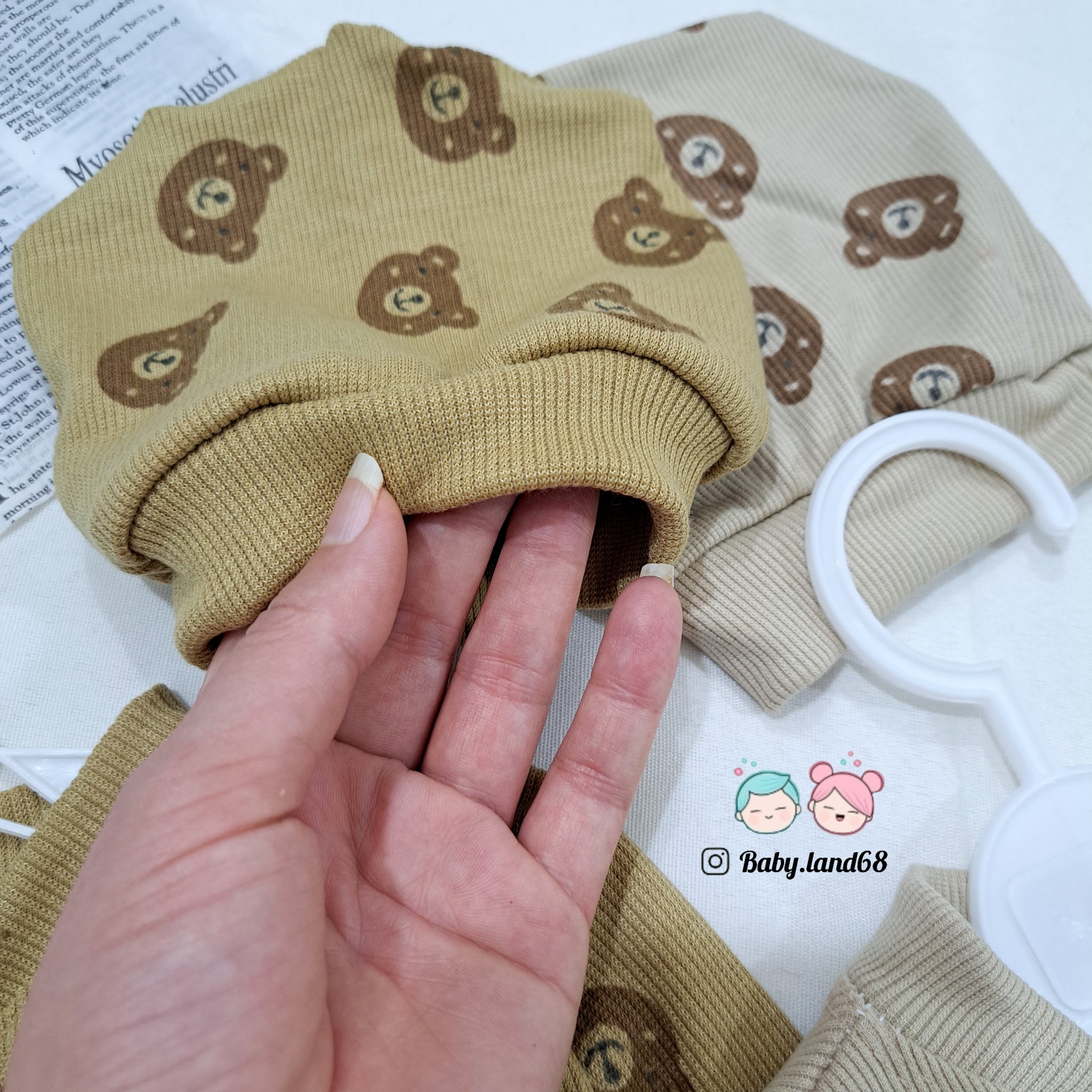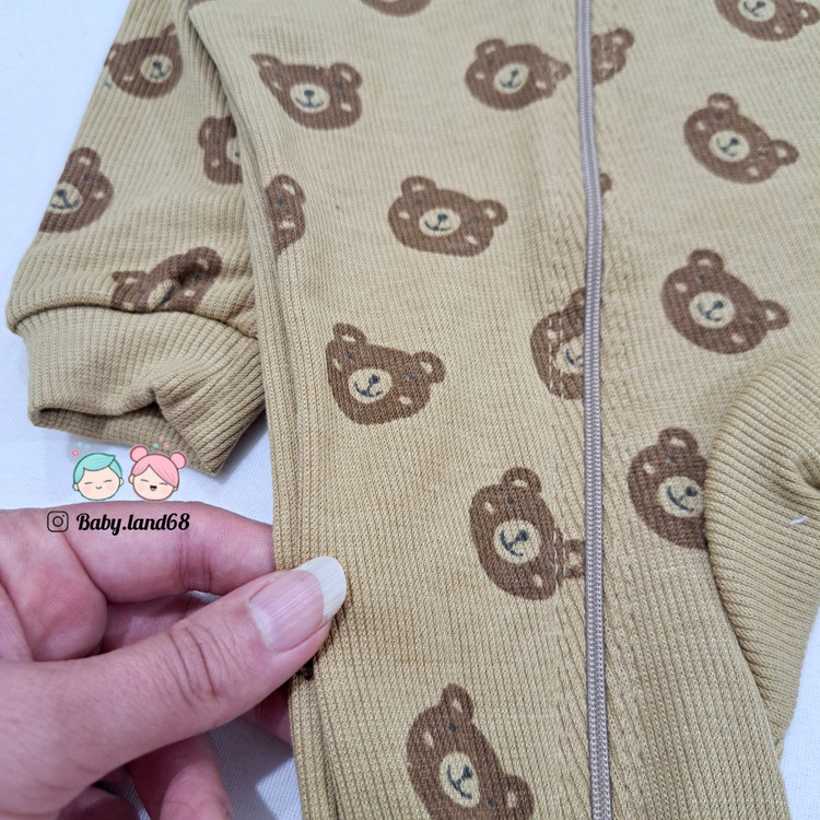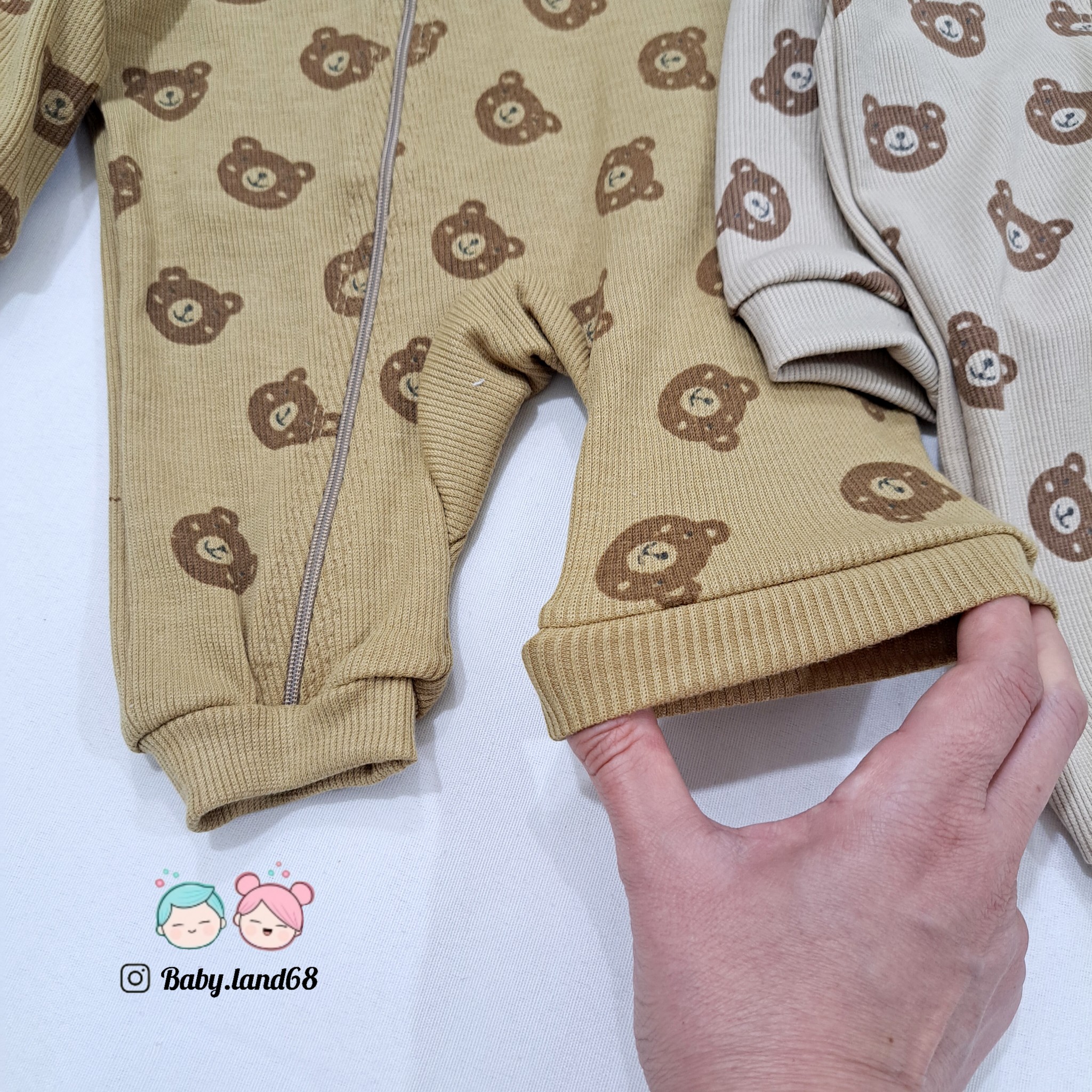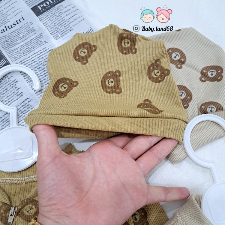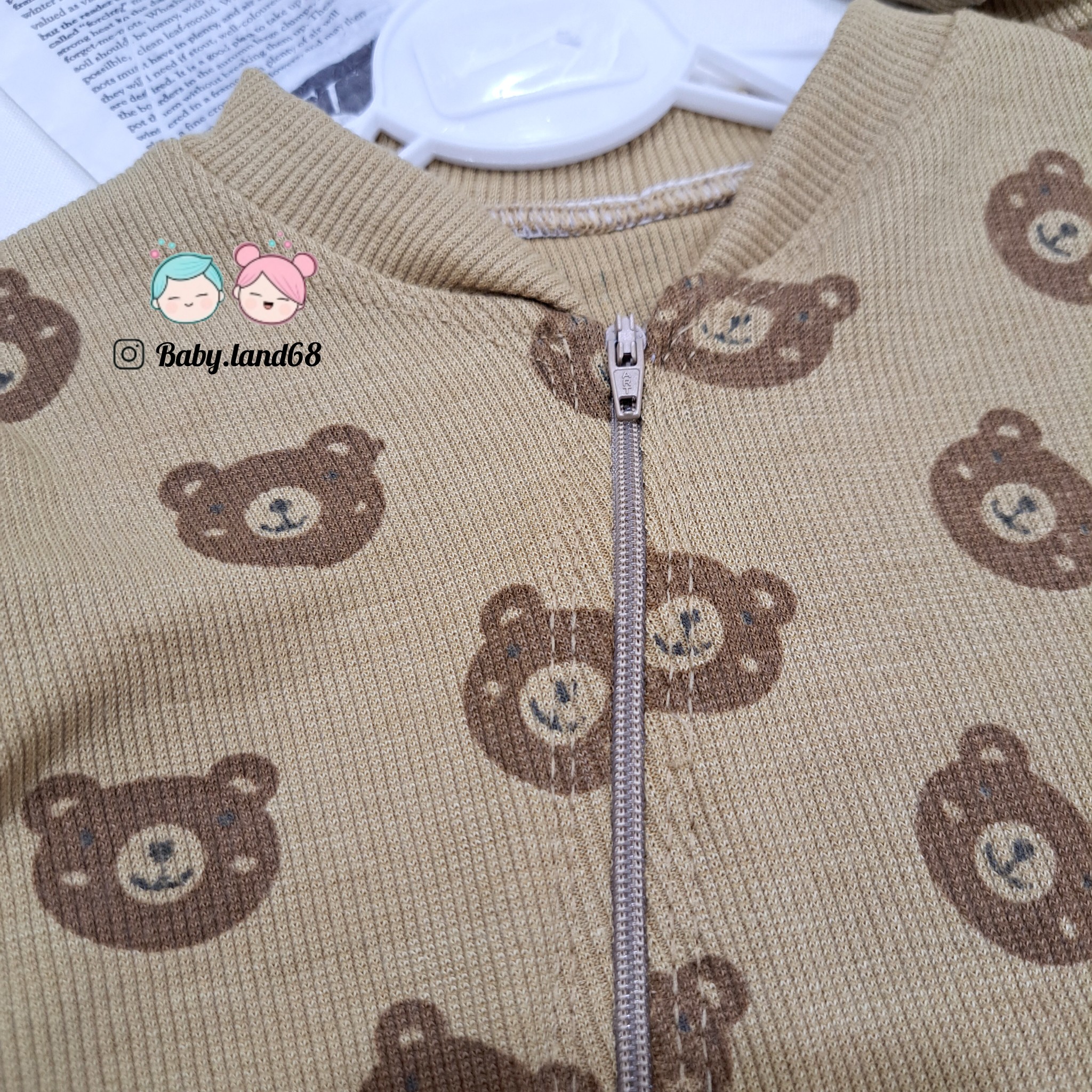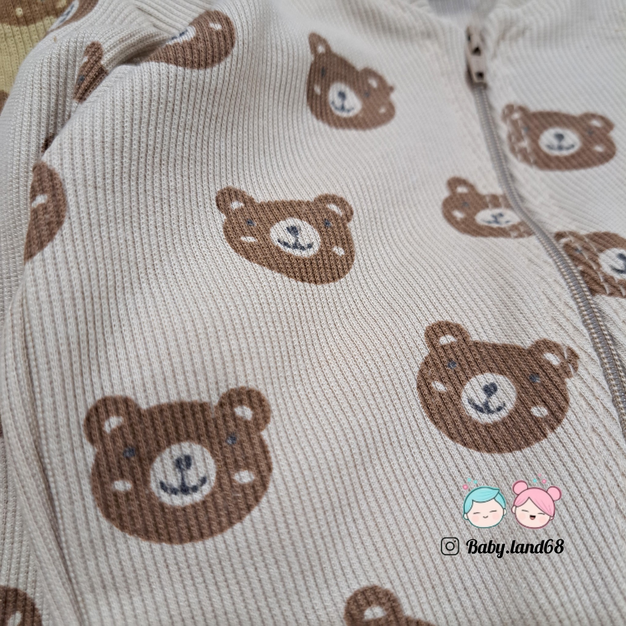۲ تیکه سرهمی زیپی و کلاه اقتصادی تمام چاپ خرس بچگانه اسپرت سایز ۱ تا ۳ مناسب نوزادی تا یک سال جنس کبریتی کشی