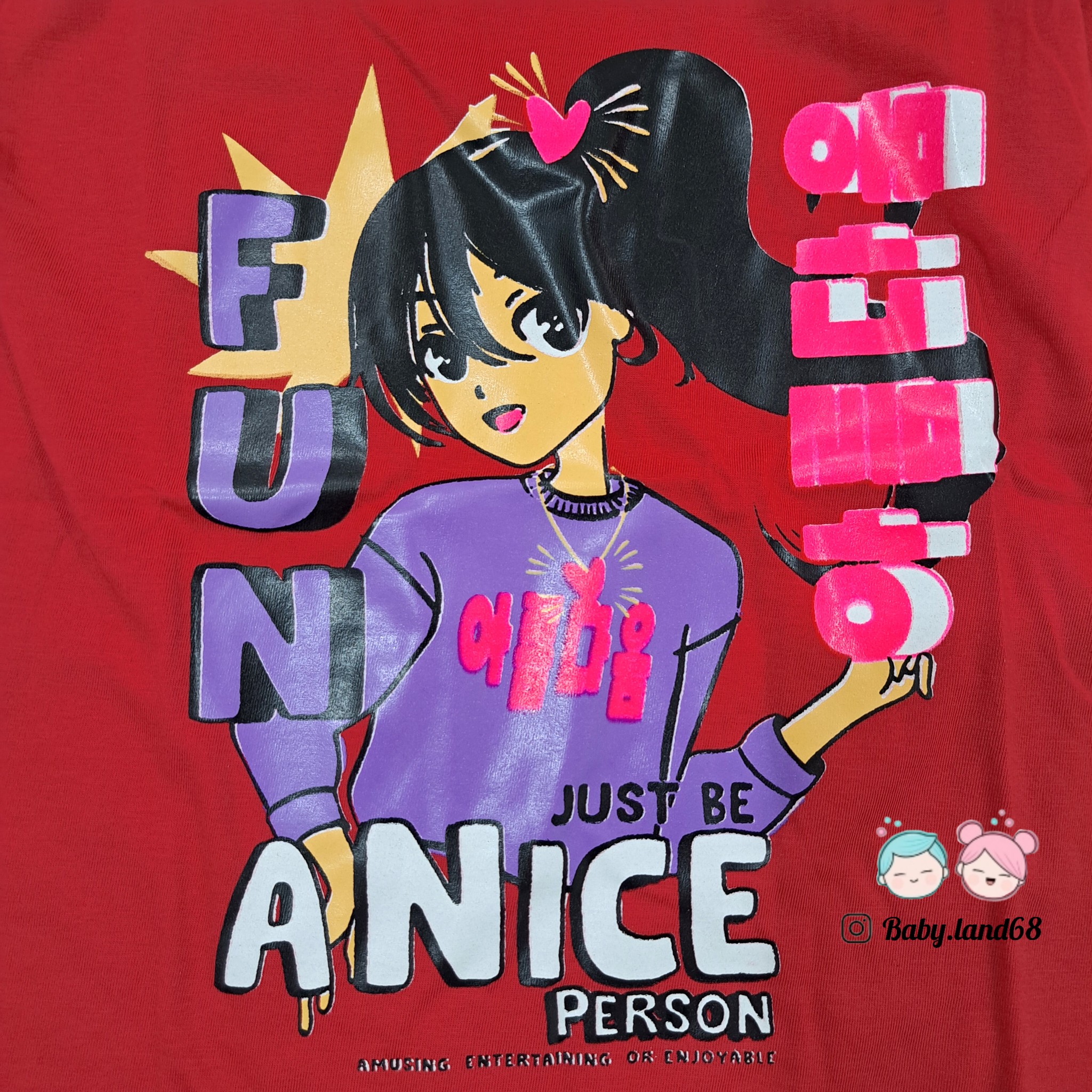 طرح دخترک روی تیشرت تک دخترانه جنس پنبه درجه یک سایز ۵۰ تا ۶۵