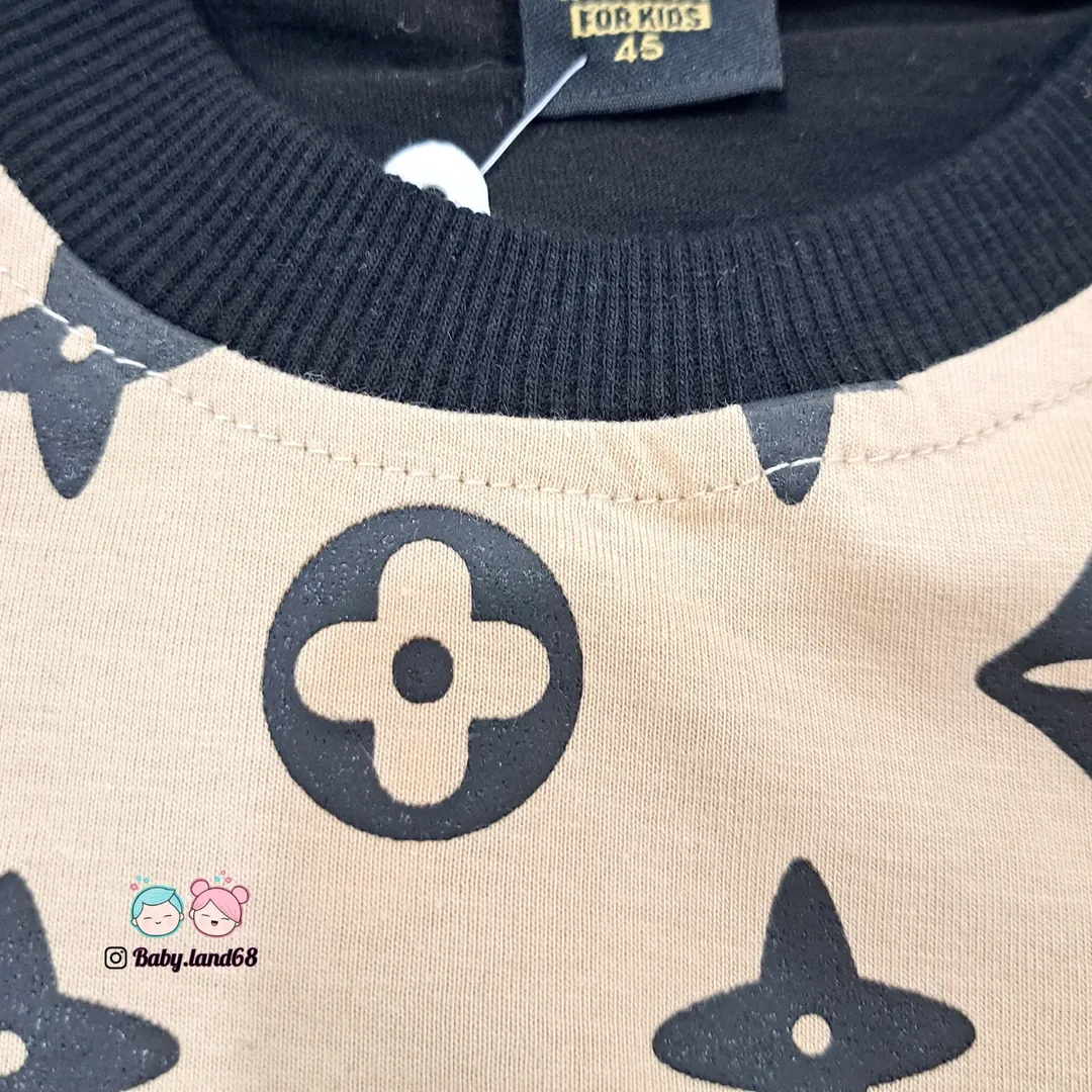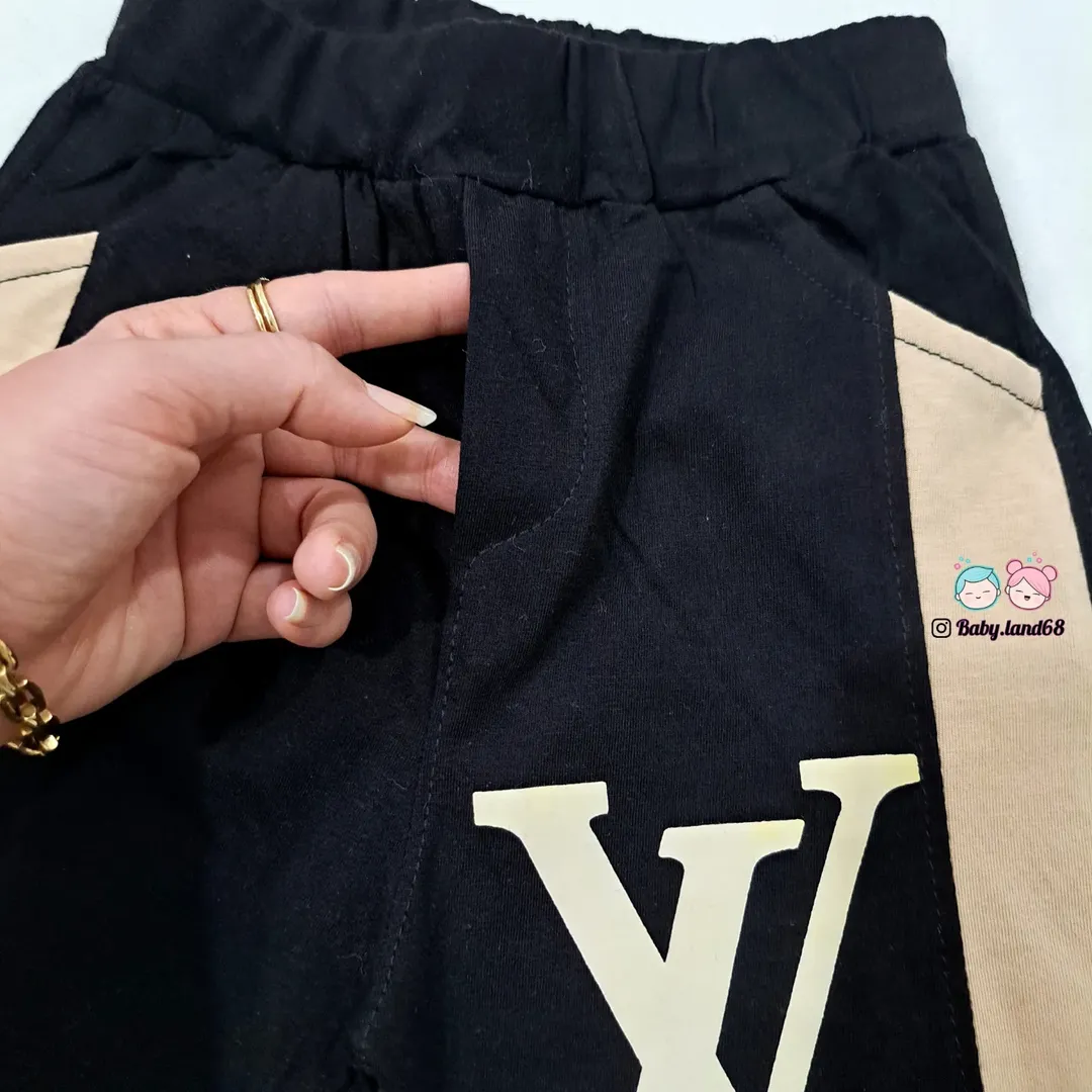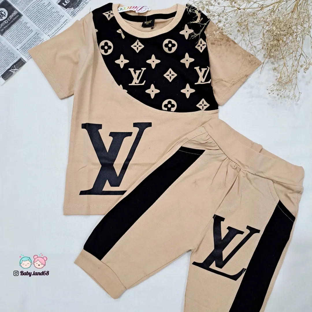 ست تیشرت و شلوارک اسپرت پسرانه و دخترانه مدل LV سایز ۴۰ تا ۵۵ مناسب ۲ تا ۹ سال جنس پنبه