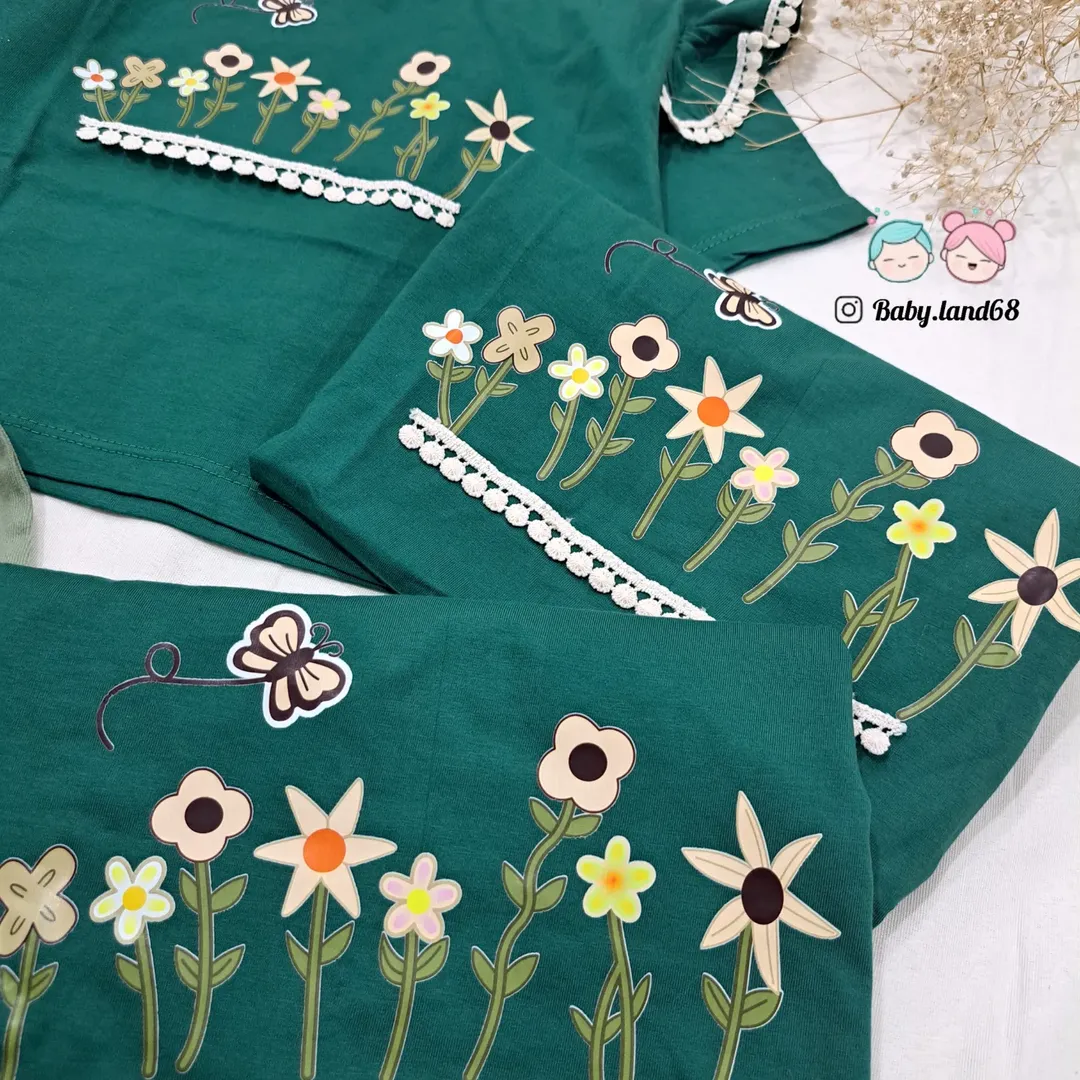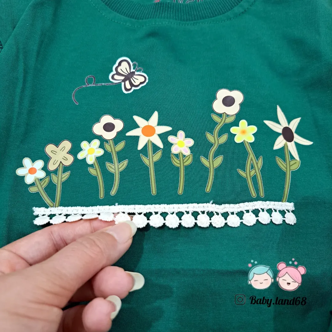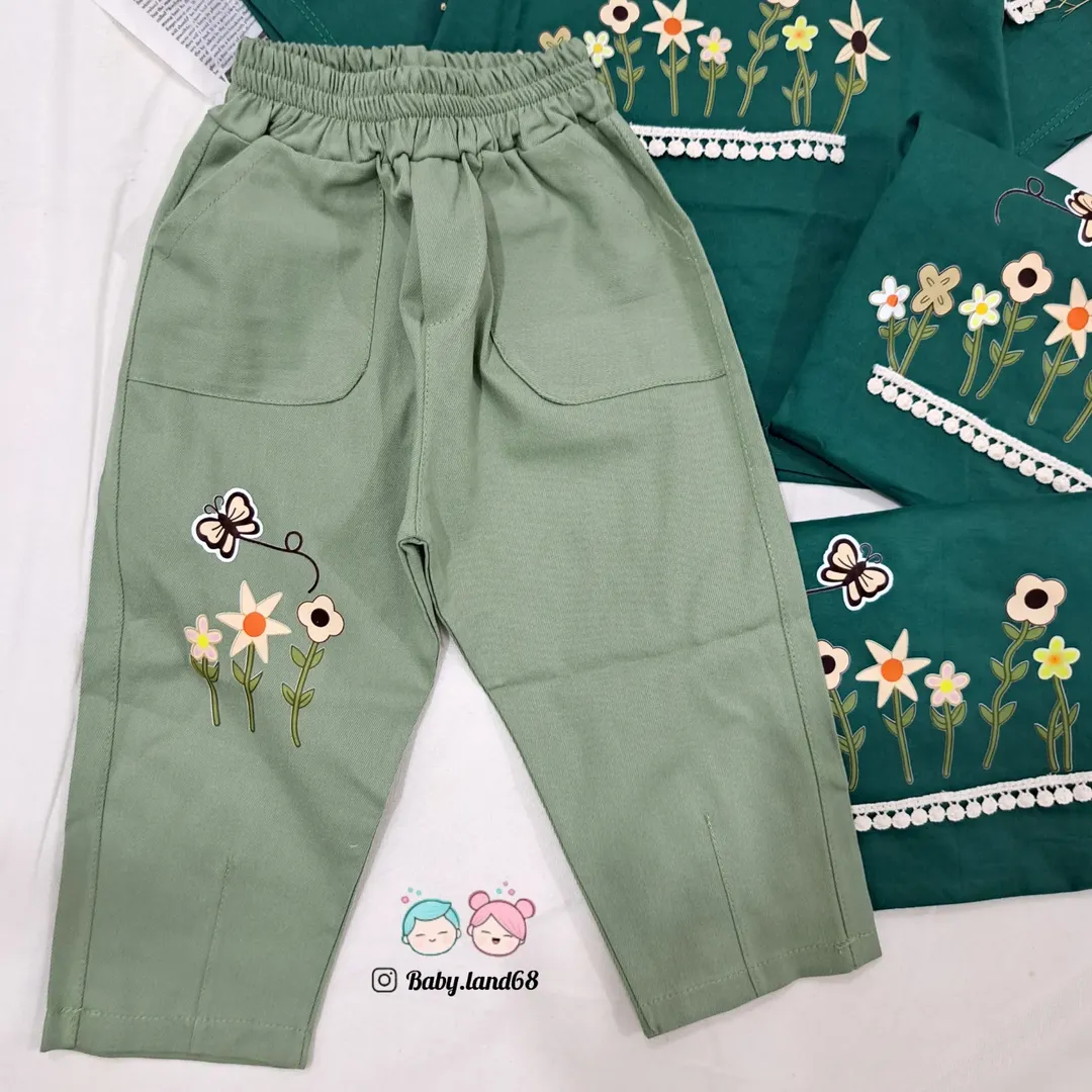 ست تیشرت و شلوار بچگانه دخترانه ۱ تا ۱۰ سال سایز ۳۵ تا ۶۰/ آستین چیندار جنس تیشرت پنبه و جنس شلوار کتان