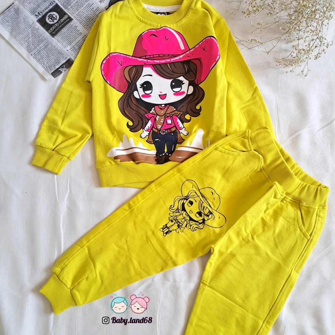 ست بلوز و شلوار بچگانه دخترانه دورس پنبه سایز ۳۵ تا ۵۰ رنگ زرد