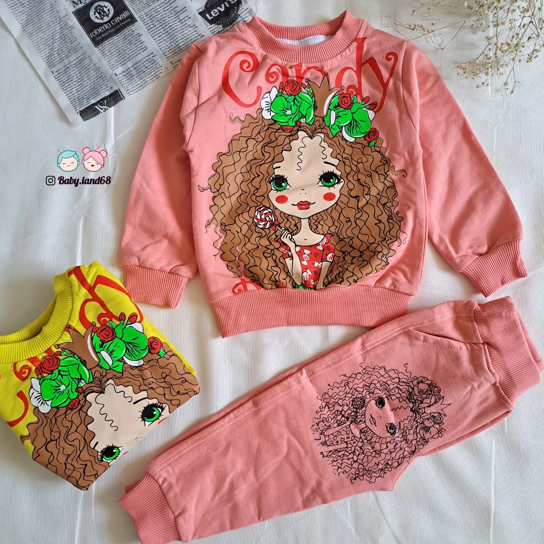 ست بلوز و شلوار بچه گانه دخترانه پاییزه ۱ تا ۵ سال سایز ۳۵ تا ۴۵ جنس دورس پنبه با کیفیت عالی و دوخت بسیار تمیز /طرح موفرفری