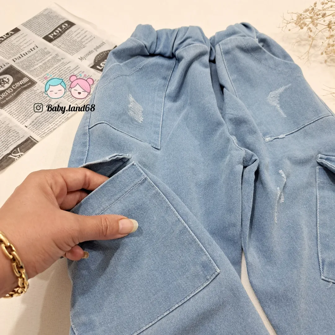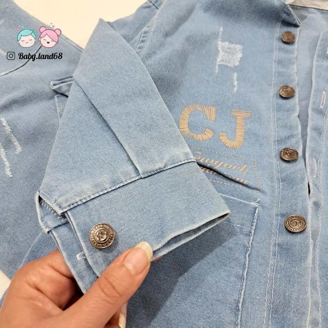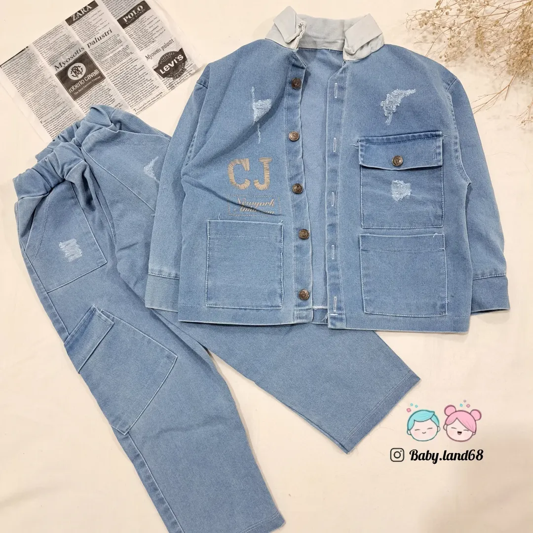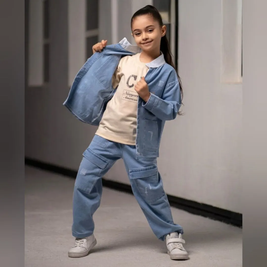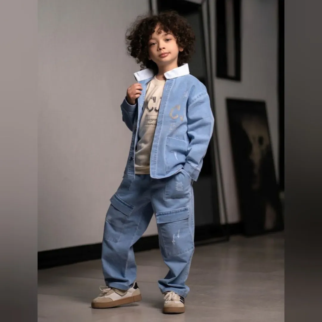 ست ۳ تیکه کت وشلوار جین و تیشرت بچگانه اسپرت سایزبندی ۴۵ تا ۶۰ مناسب ۴ تا ۱۰ سال .