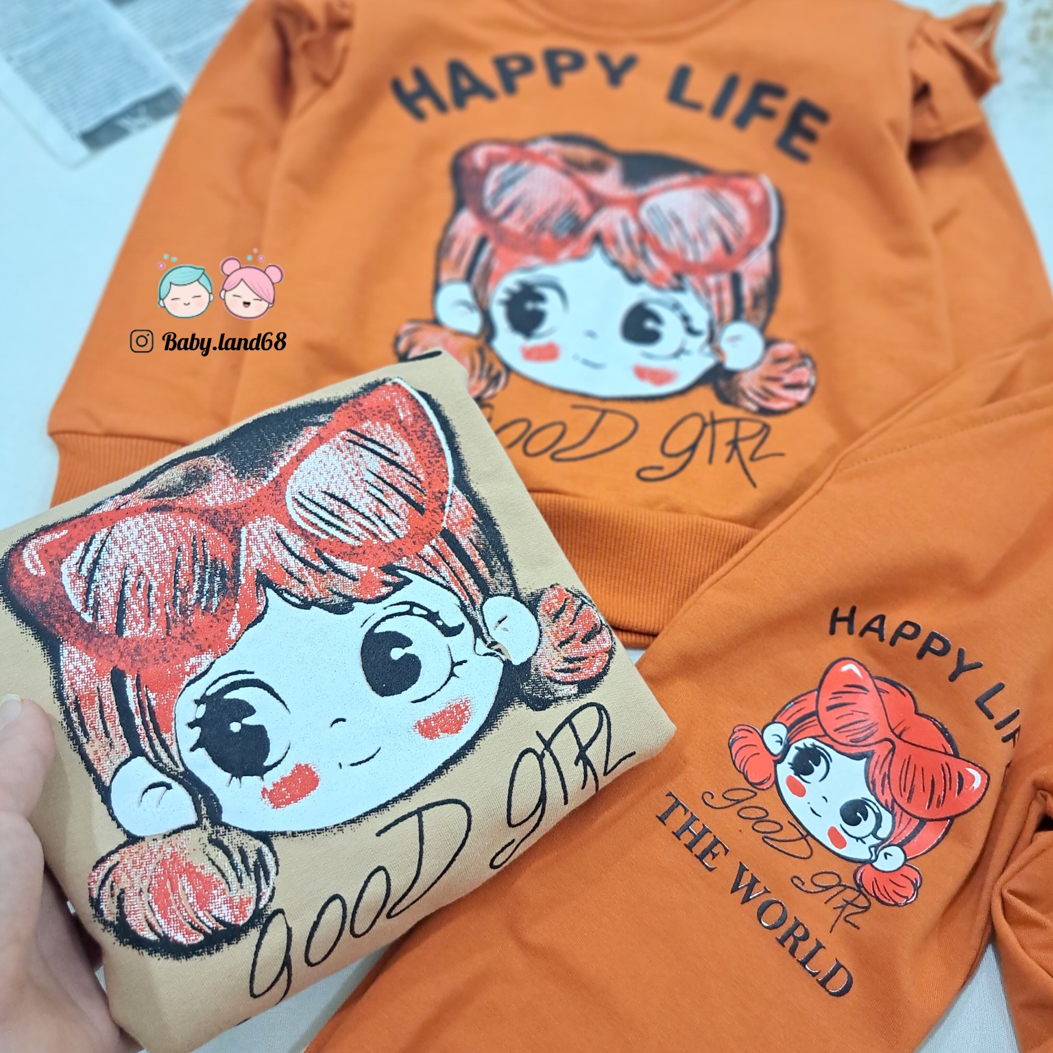 ست بلوز و شلوار بچه گانه دخترانه ۲تا ۹ سال سایز ۴۰ تا ۵۵ جنس دورس پنبه با کیفیت عالی و قیمت مناسب طرح دخترک عینکی