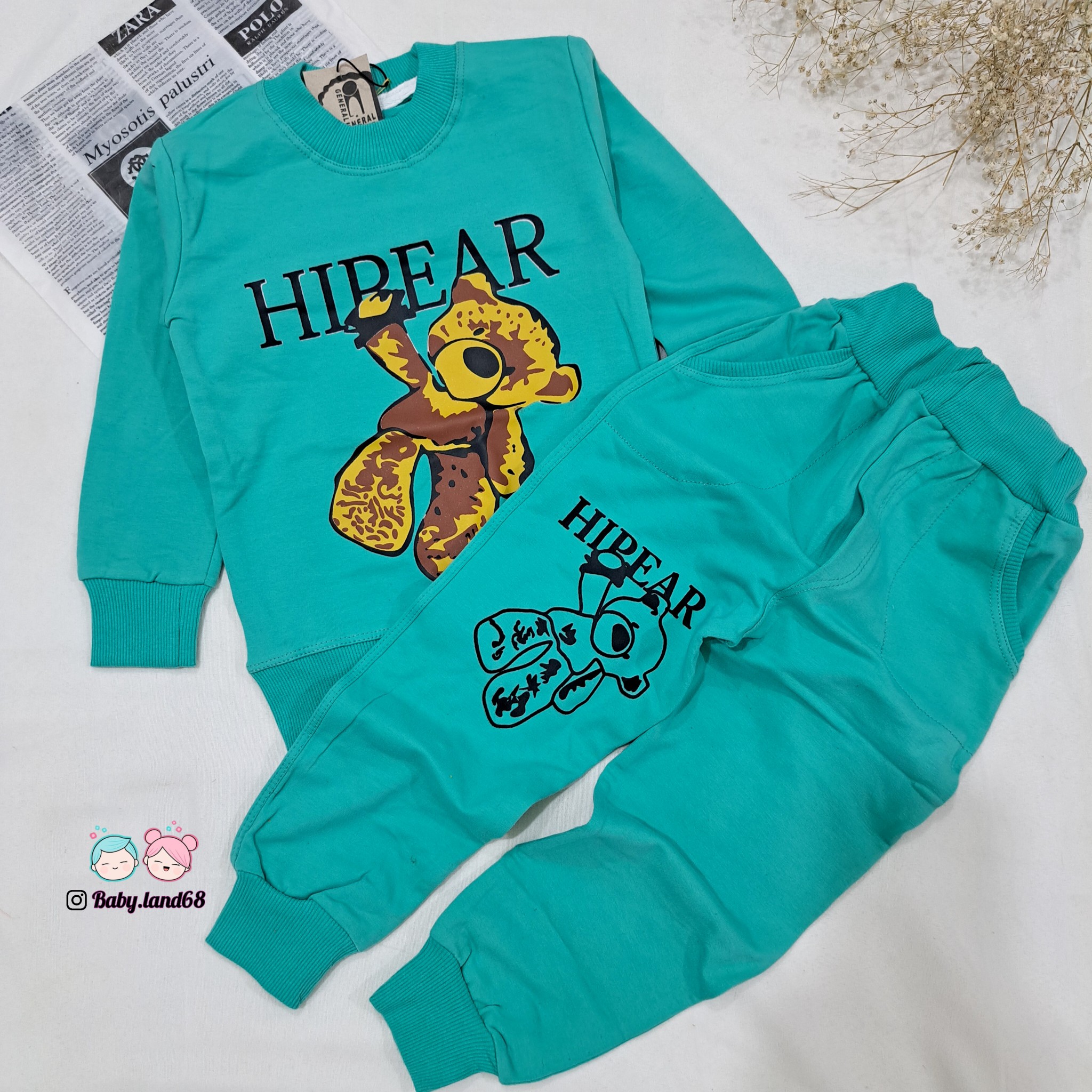 ست بلوز و شلوار بچگانه اسپرت سایز ۴۰ تا ۵۵ مناسب ۲ تا ۹ سال طرح خرسی جنس دورس پنبه با کیفیت رنگ فیروزه ای