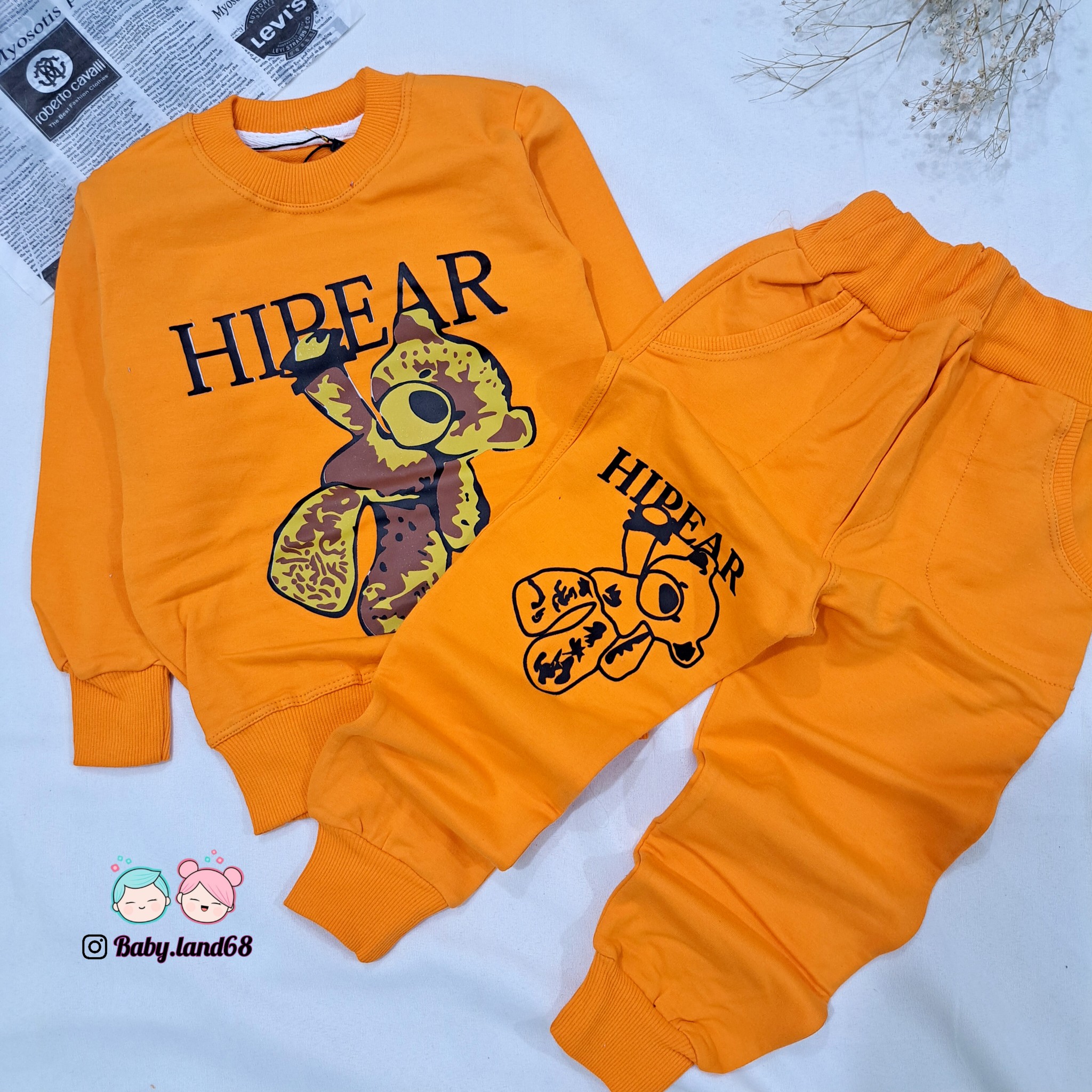 ست بلوز و شلوار بچگانه اسپرت سایز ۴۰ تا ۵۵ مناسب ۲ تا ۹ سال طرح خرسی جنس دورس پنبه با کیفیت  رنگ نارنجی
