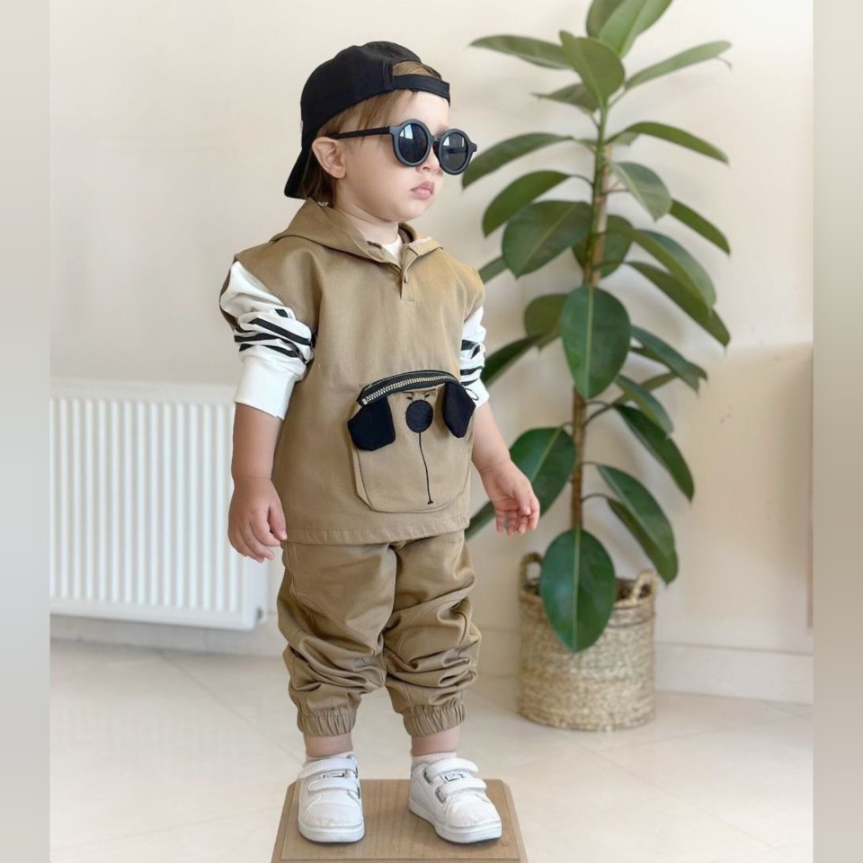 ست سه تیکه بیرونی بلوز دورس پنبه و هودی جلیقه ای و شلوار کتان بچگانه اسپرت ۱ تا ۷ سال سایز ۳۵ تا ۵۰