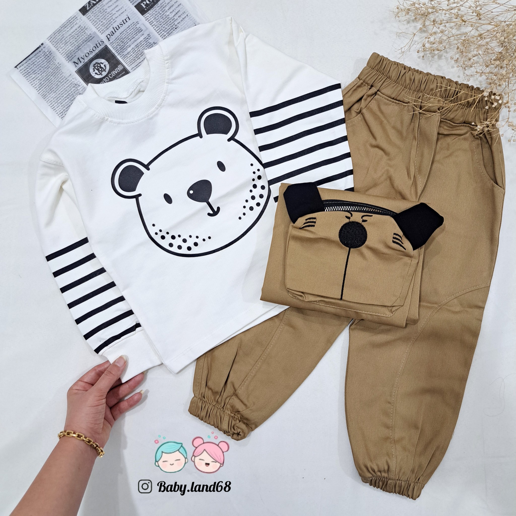 ست ۳ تیکه بیرونی بلوز دورس پنبه و هودی و شلوار کتان بچگانه اسپرت سایز ۳۵ تا ۵۰ مناسب ۱ تا ۷ سال