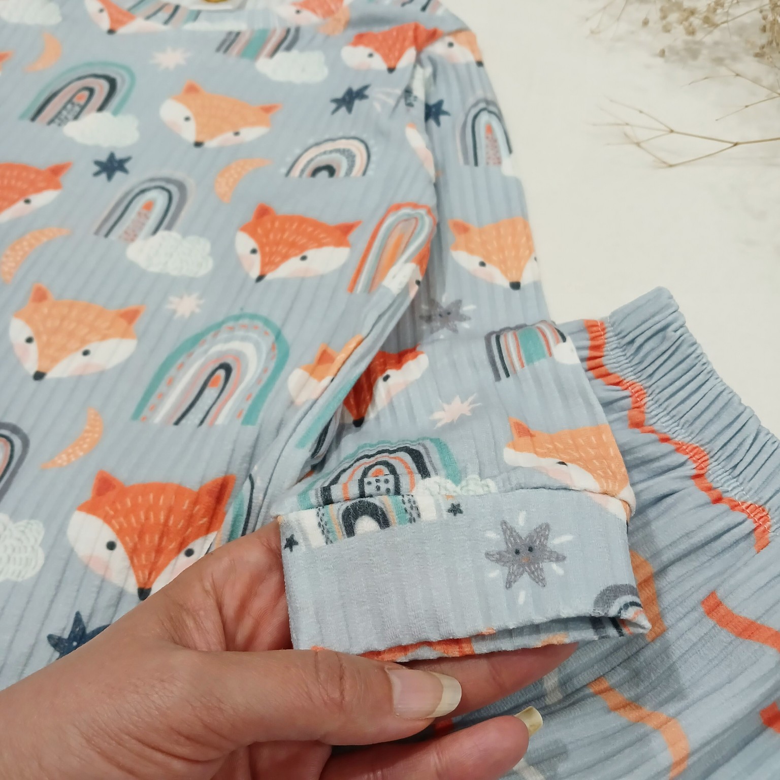 ست بلوز و شلوار راحتی بچه گانه پسرانه ۲ تا ۹ سال جنس نخ پنبه ریلی برند جامک با کشسانی عالی طرح روباه