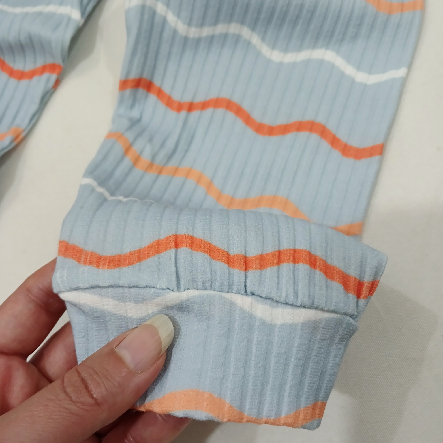 پهنای لباس از زیر یک بغل تا بغل دیگه از روی لباس را اندازه بزنید برای اندازه گیری قد شلوار هم شلوار را پهن کنید و اندازه بزنید.