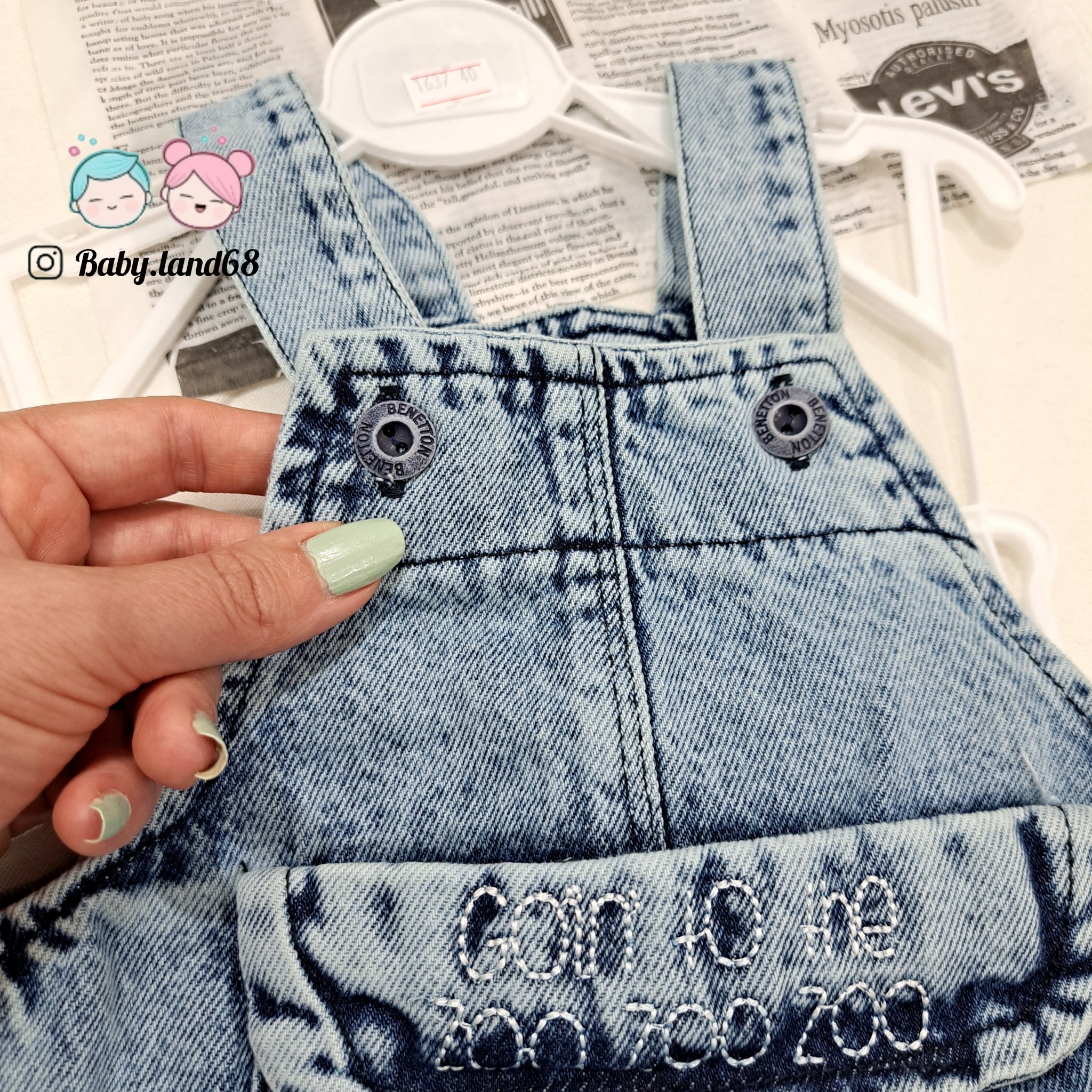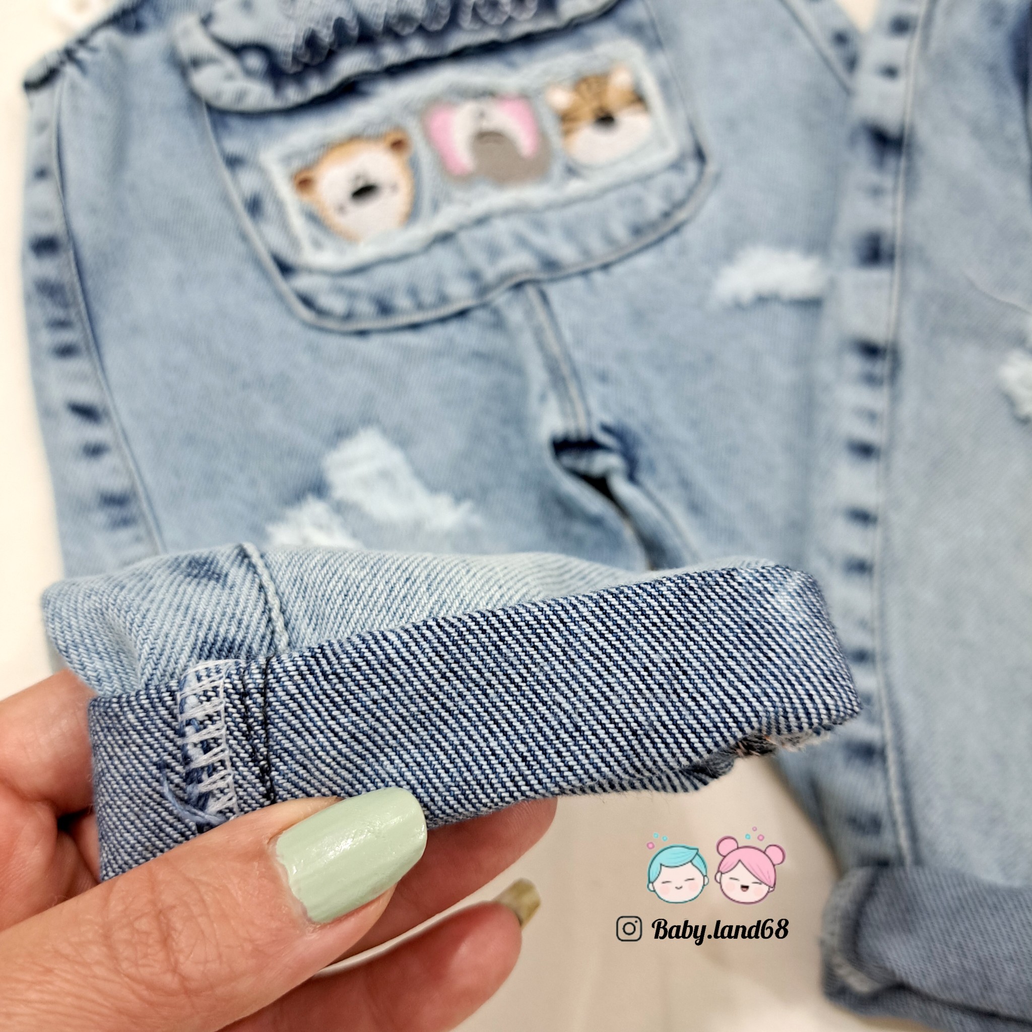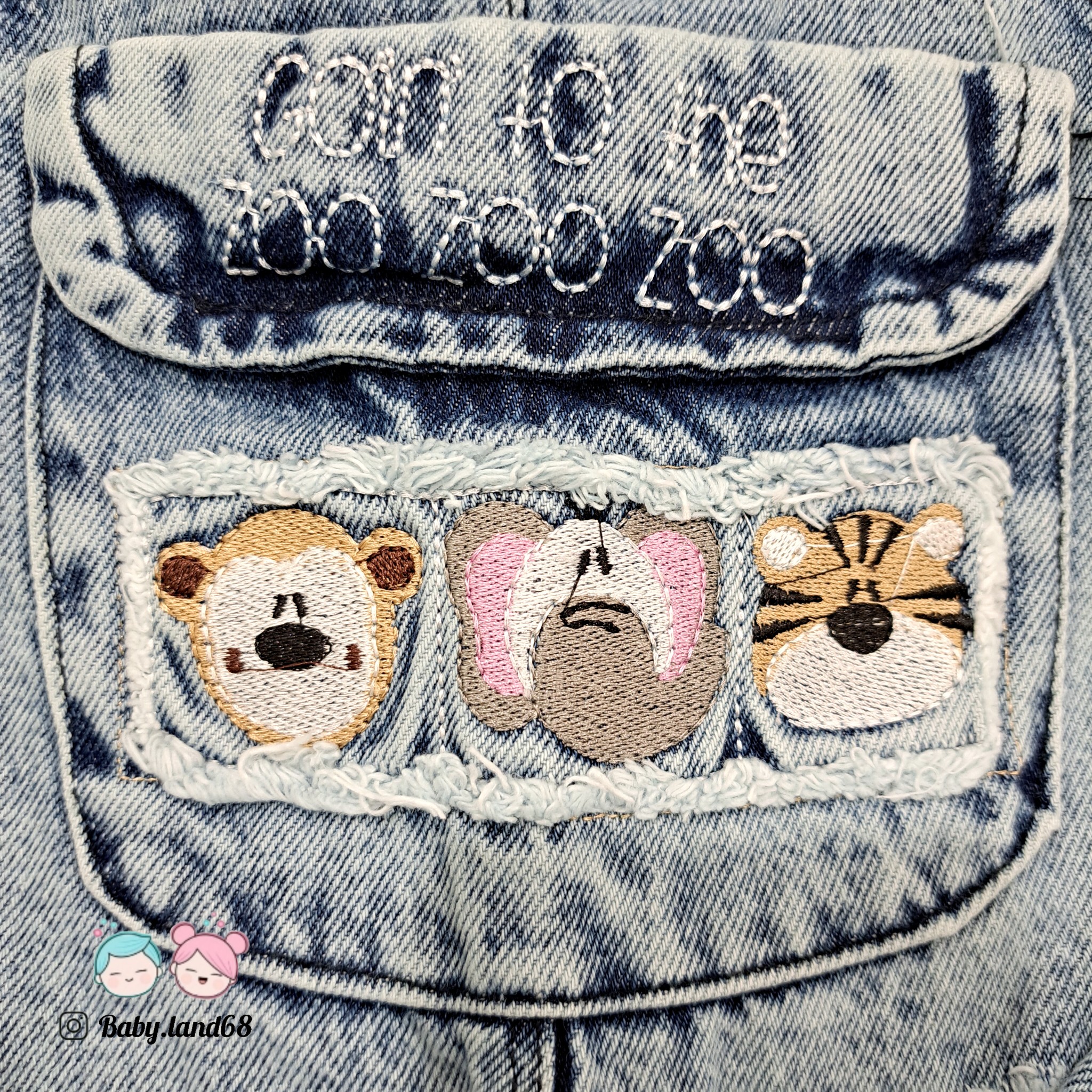 بیلر جین اسپرت بچه گانه مناسب دختر و پسر 6 ماهه تا ۳ سال طرح حیوانات  تیکه دوزی شده جنس لی گرم بالا رنگ آبی سنگشور شده