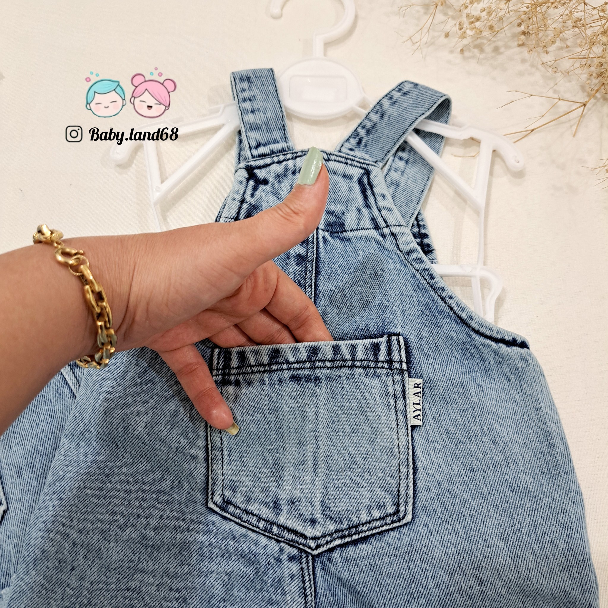 بیلر جین اسپرت بچگانه دخترانه و پسرانه مناسب ۶ ماه تا ۳ سال طرح حیوانات تیکه دوزی شده جنس لی گرم بالا رنگ آبی سنگشور شده برند آیلار