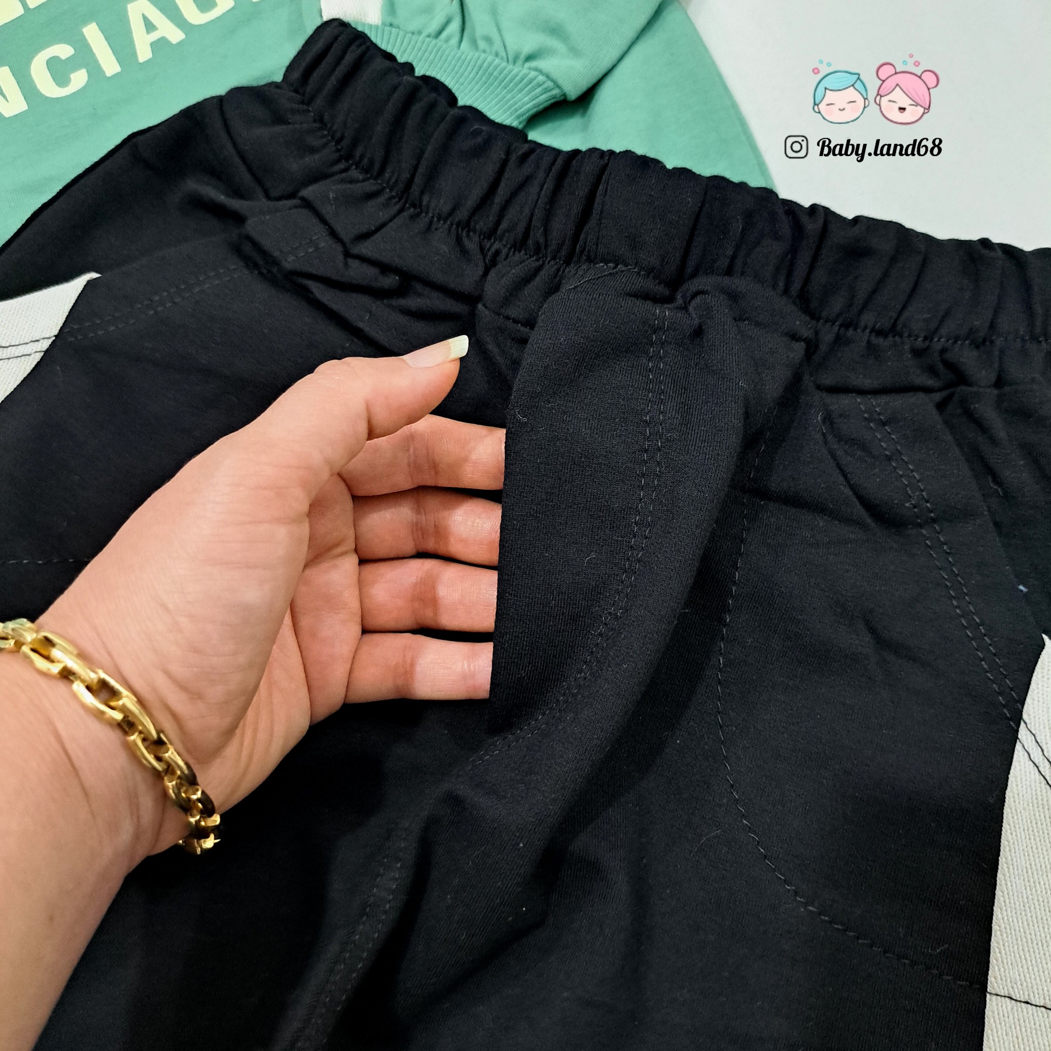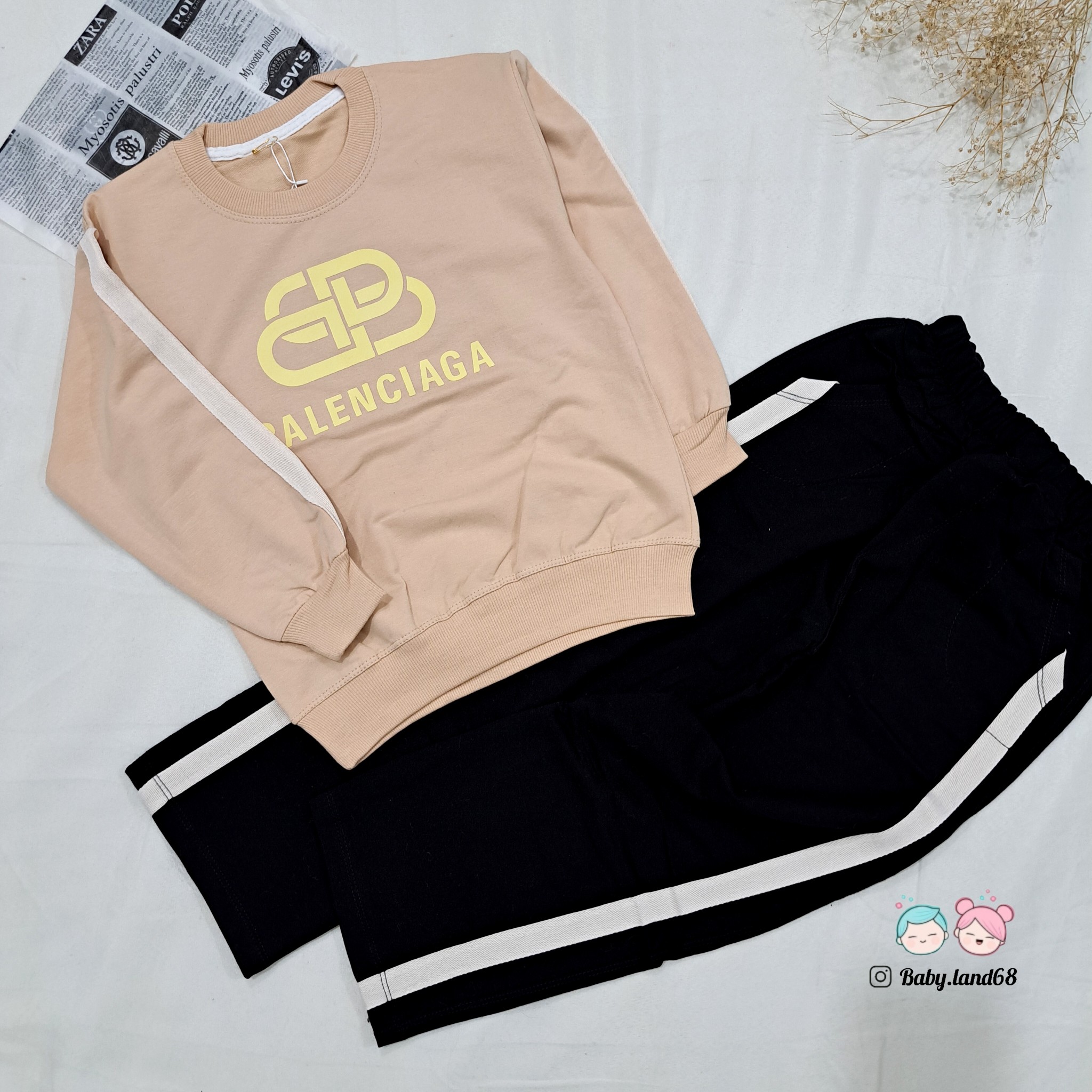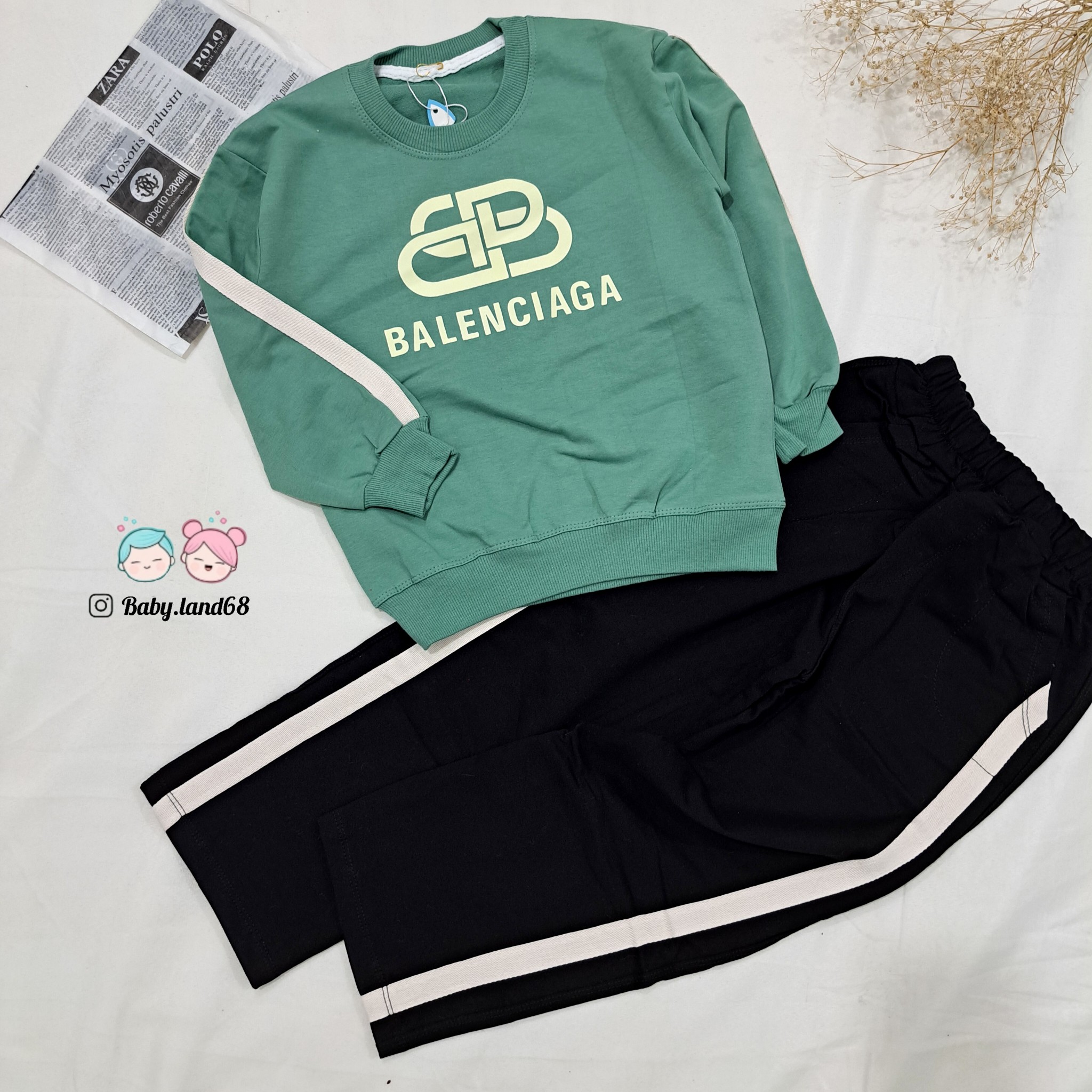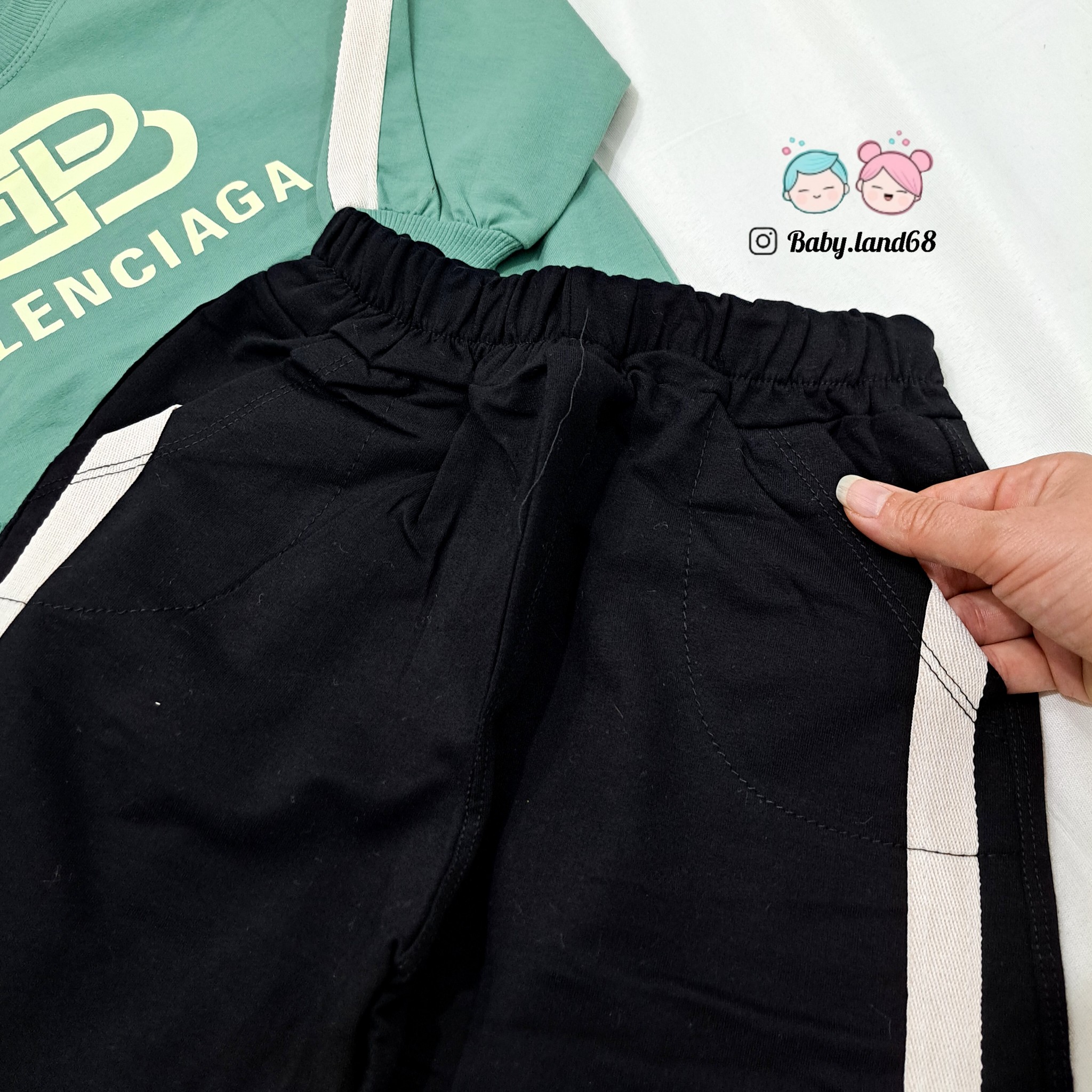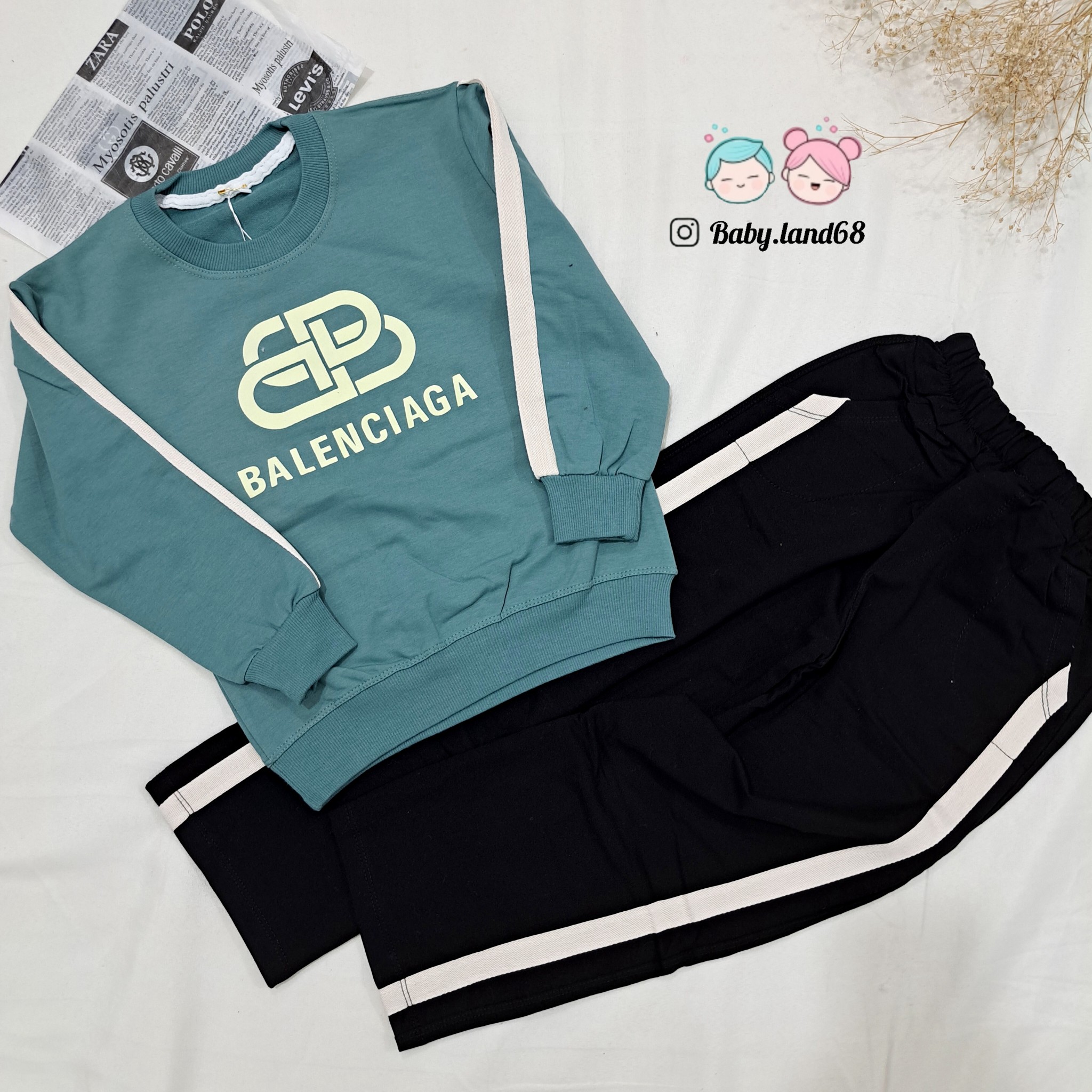 ست بلوز و شلوار بگ نوار دوزی شده بچگانه پسرانه سایز ۵۰ و ۵۵ مناسب ۶ تا ۹ سال جنس دورس پنبه درجه یک برند آدیداس طرح بالنسیاگا